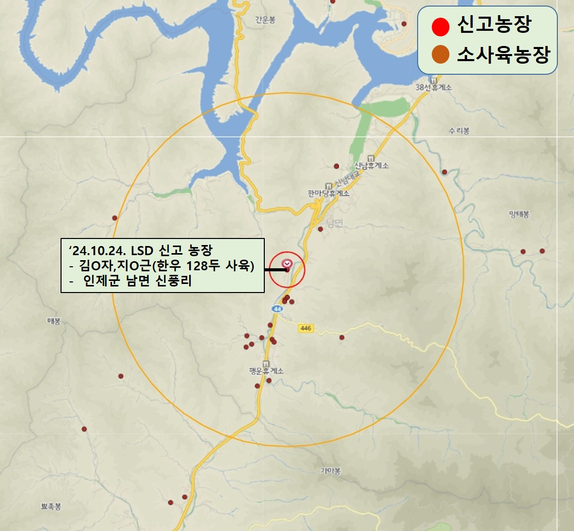 농장주는 의심 증상을 보인 소를 발견해 10월 24일 인제군에 신고했으며, 검역본부에서 정밀검사를 실시한 결과 10월 25일 오전 7시에 양성 확진 판정을 받았다. 이에 따라 도는 즉시 가축위생방역지원본부 초동방역팀을 투입해 현장 통제와 소독을 진행했고, 인제군을 포함한 인접 6개 시군에 일시 이동 중지 명령을 발령해 확산 방지에 나섰다. 이동 중지 명령은 10월 25일 7시부터 26일 7시까지 24시간 동안 유지된다.