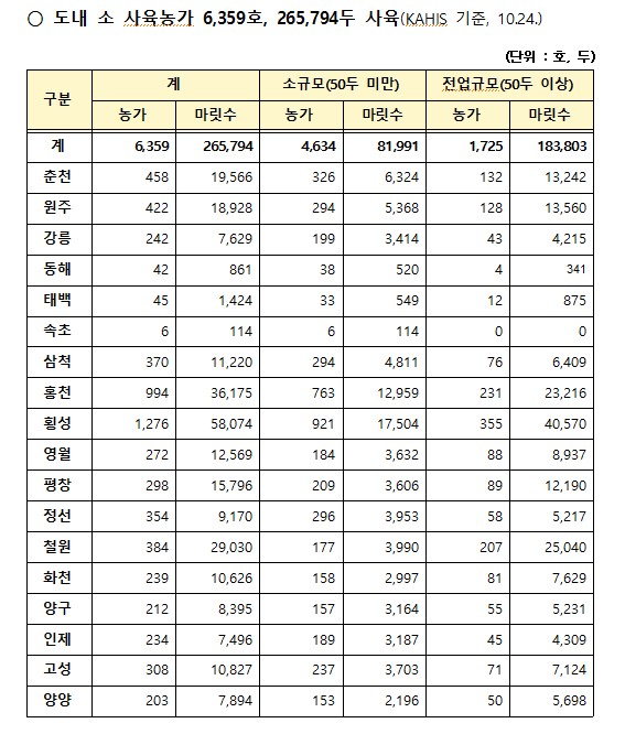 강원특별자치도는 10월 24일 인제군 남면 소재 한우 농가에서 신고된 럼피스킨병 의사환축에 대한 정밀검사를 실시한 결과, 10월 25일 최종 양성으로 확진되었다고 밝혔다. 이번 발생은 올해 5번째이자, 강원도 내에서 발생한 12번째 사례다.