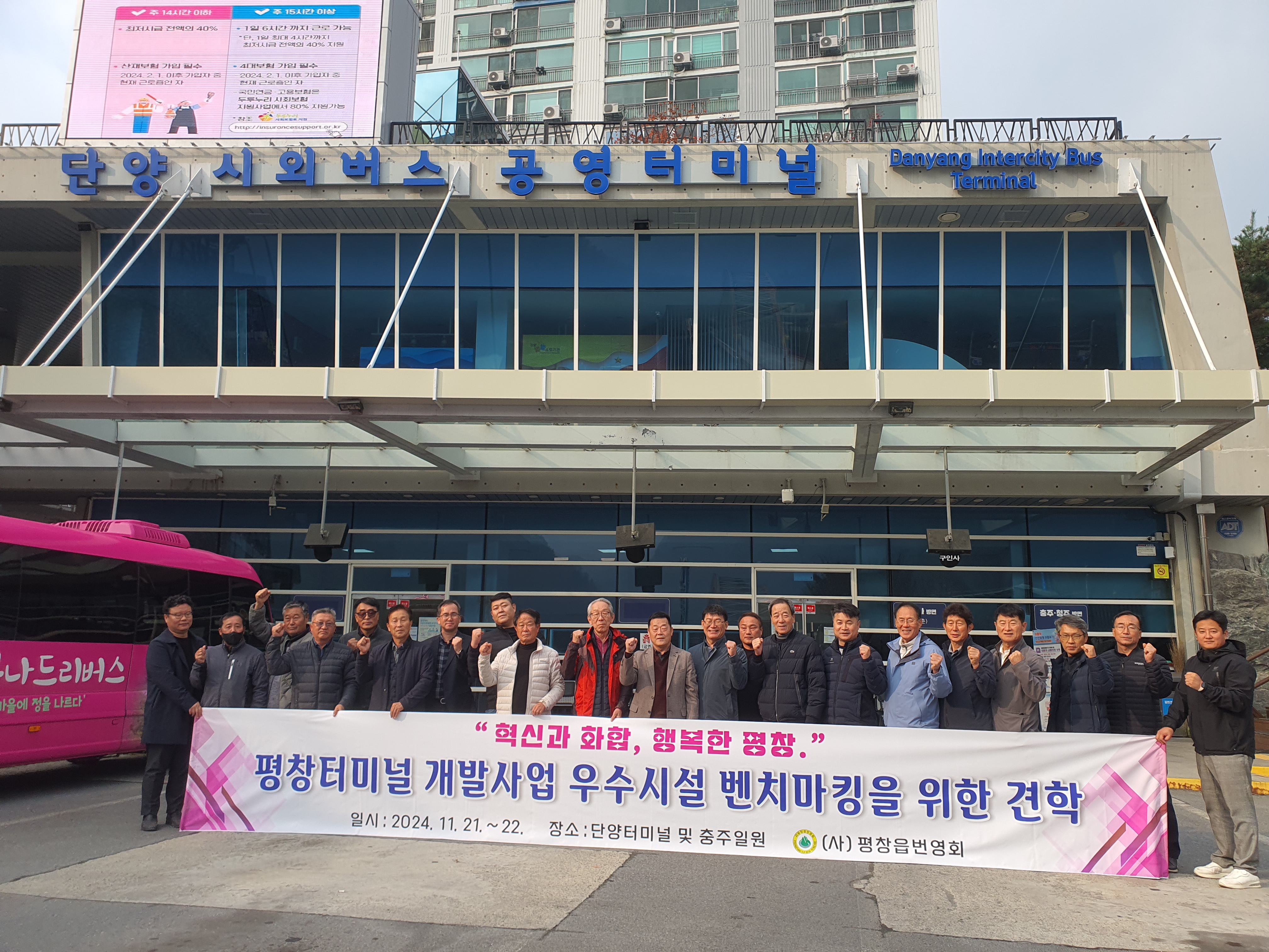 평창군은 주민설명회 이후 평창읍 번영회에서 (회장 김종수) 11월 21일부터 22일까지 충북 단양과 충주 지역의 터미널 및 인근 상권을 견학하며 활용 사례를 조사했다. 단양과 충주는 터미널을 중심으로 한 상권 활성화와 관광 연계 방안에서 긍정적인 평가를 받은 지역으로, 평창군은 이 같은 사례를 평창버스터미널 부지에 적용할 가능성을 검토 중이다.