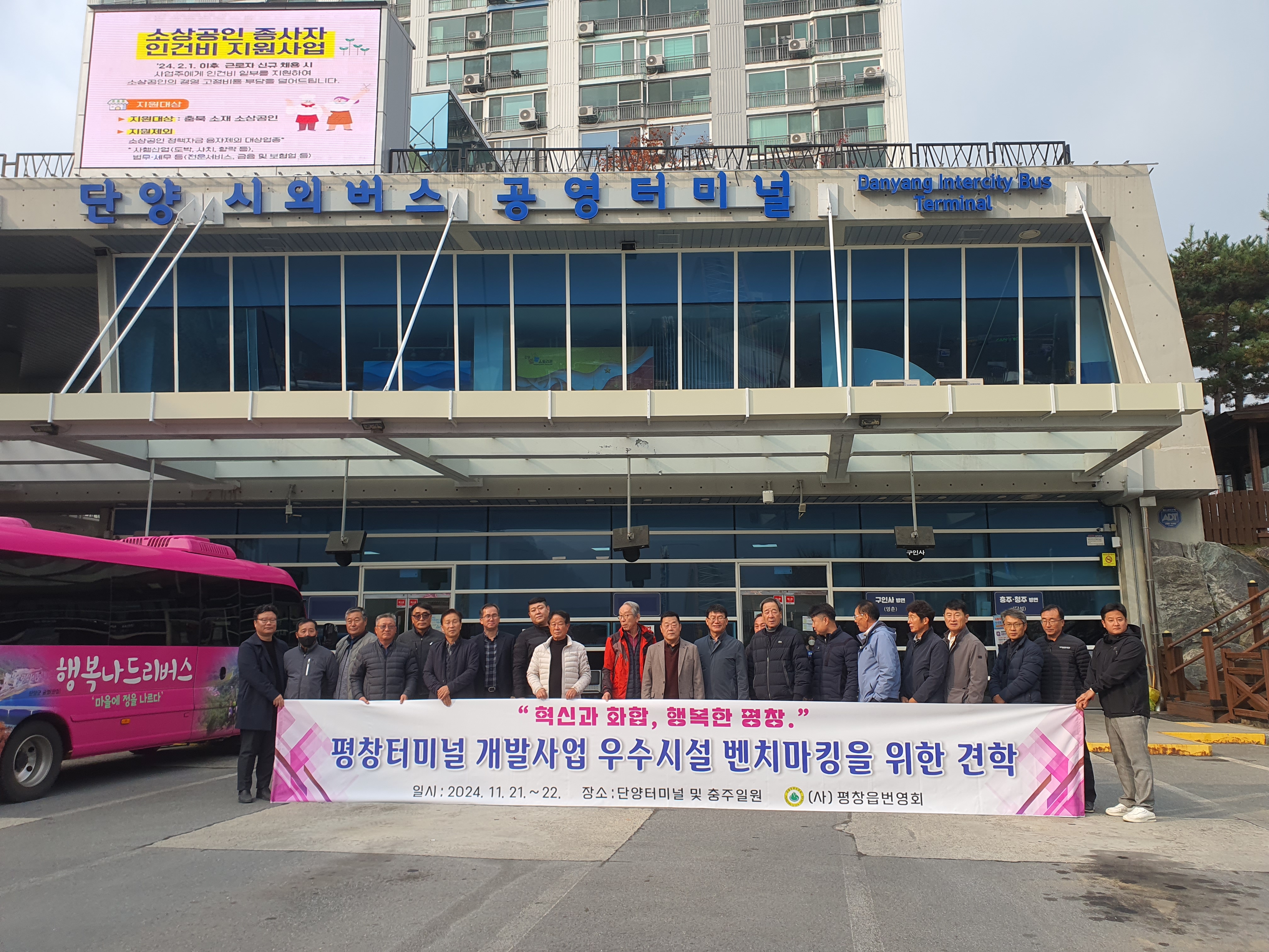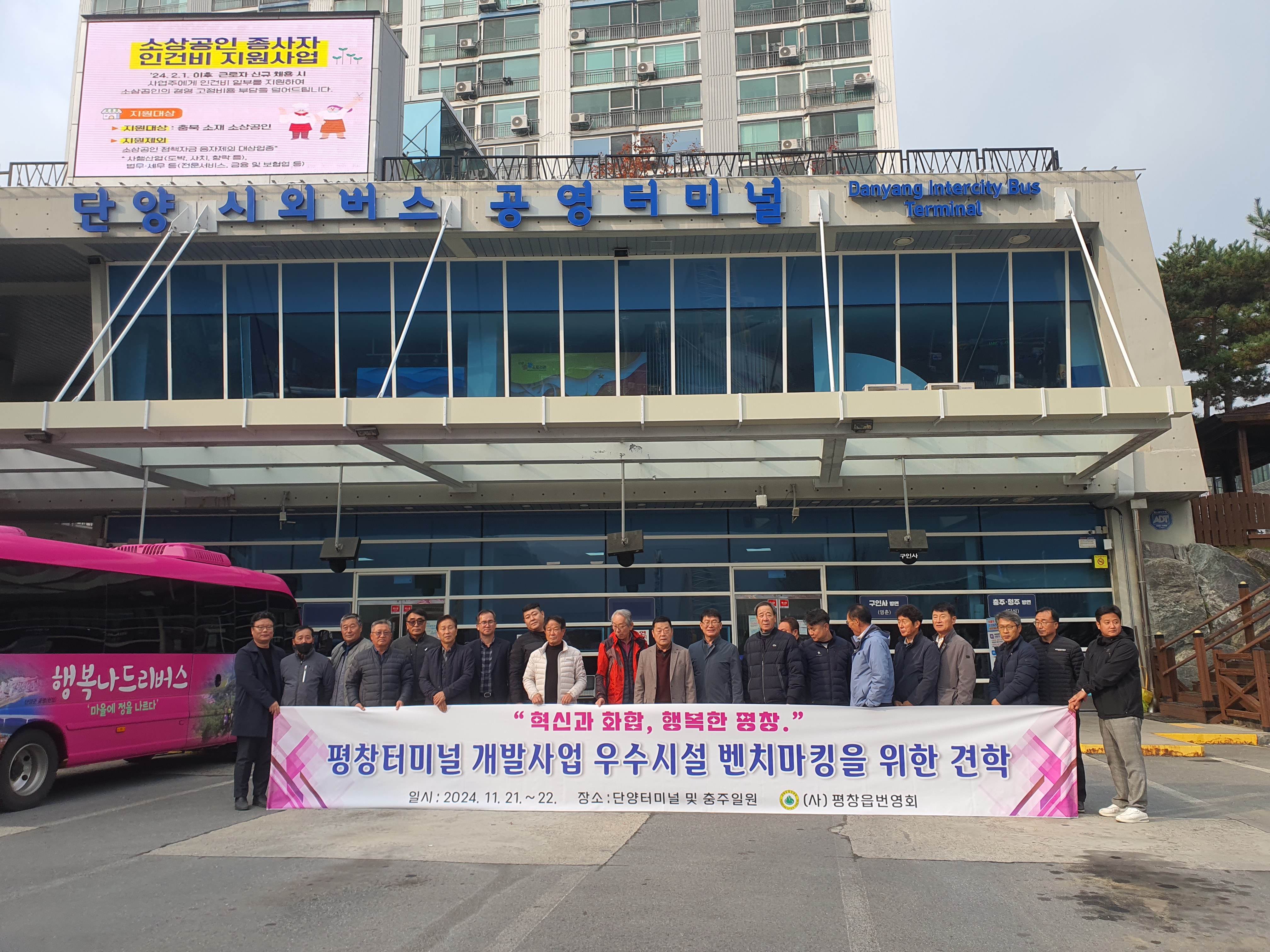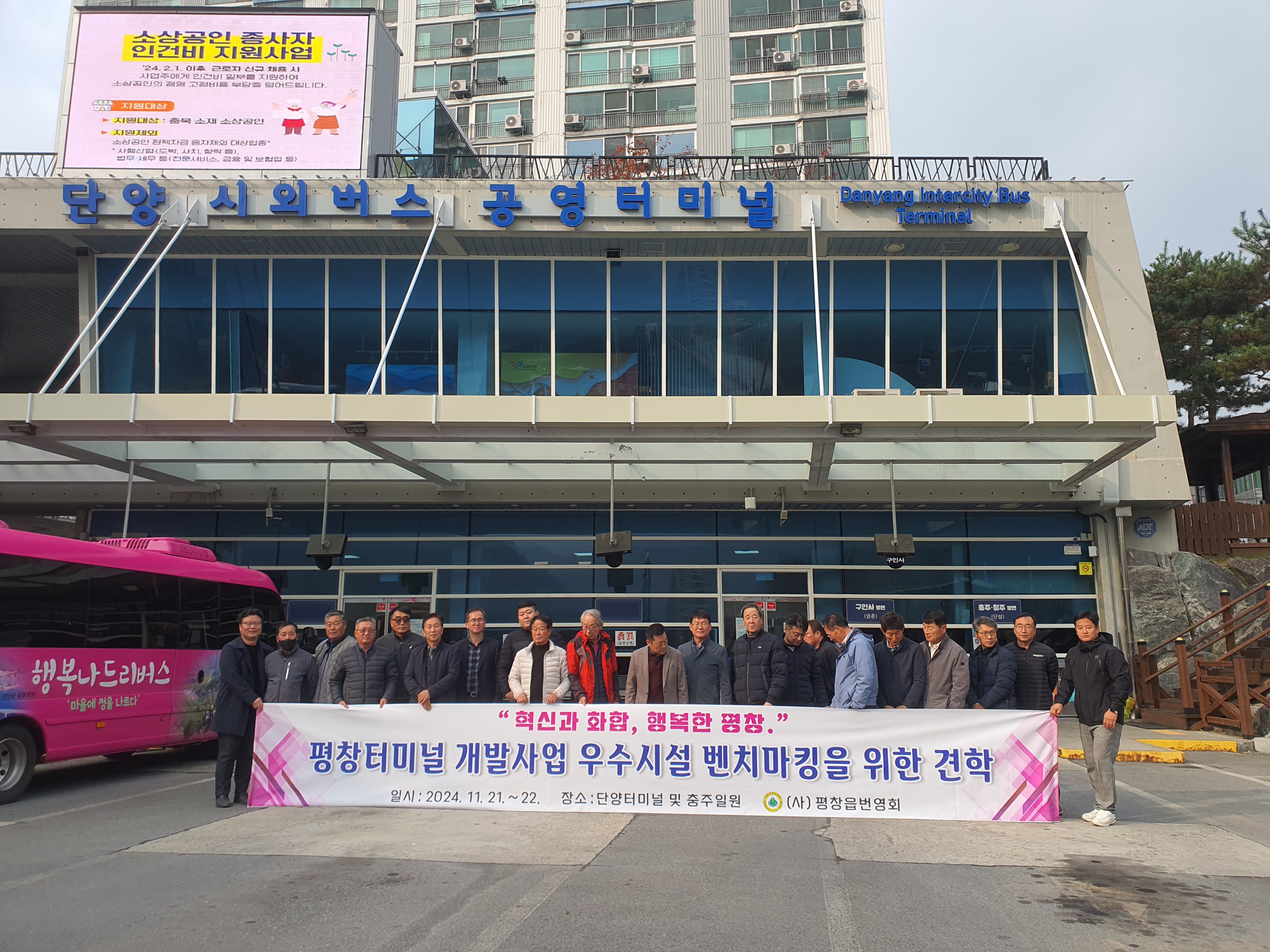 평창군은 주민설명회 이후 평창읍 번영회에서 (회장 김종수) 11월 21일부터 22일까지 충북 단양과 충주 지역의 터미널 및 인근 상권을 견학하며 활용 사례를 조사했다. 단양과 충주는 터미널을 중심으로 한 상권 활성화와 관광 연계 방안에서 긍정적인 평가를 받은 지역으로, 평창군은 이 같은 사례를 평창버스터미널 부지에 적용할 가능성을 검토 중이다.