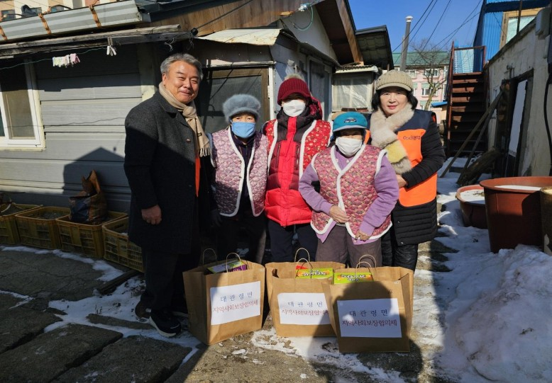 대관령면지역사회보장협의체(위원장 신양문, 박정우)는 12월 26일 지역 내 취약 어르신 38명을 대상으로 방한용품과 정성이 담긴 선물 세트를 전달하는 나눔 행사를 진행했다.