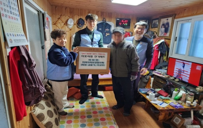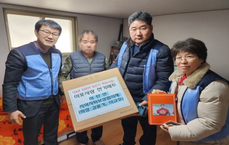 미탄면지역사회보장협의체(위원장 김웅기, 이규호)는 어제(12월 23일) 2024년 하반기 특화사업의 일환으로 난방 취약계층 13가구에 난방매트를 전달하며 따뜻한 나눔을 실천했다.