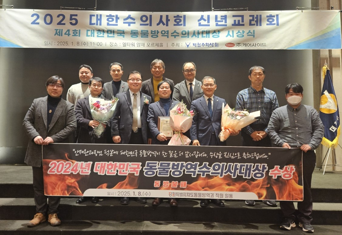시상식은 2024년 1월 8일(수) 서울 양재 엘타워(오르체홀)에서 열렸으며, 대한수의사회 허주형 회장과 전국 동물방역 관계자들이 참석했다.