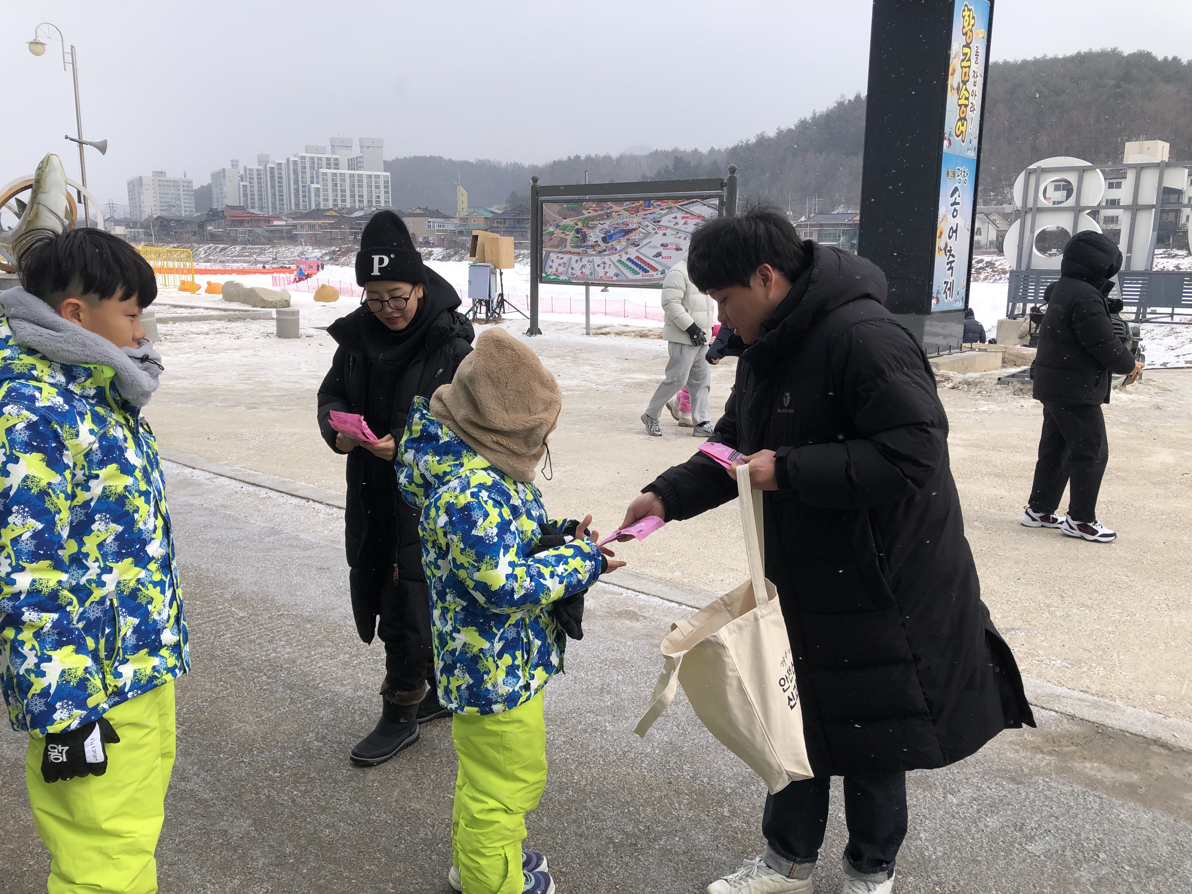 평창군은 평창송어축제장과 지역 전통시장에서 지역 주민들의 안전과 건강을 확보하기 위해 방한용품을 지급하고 한파 대비 방법을 홍보한다고 17일 밝혔다.