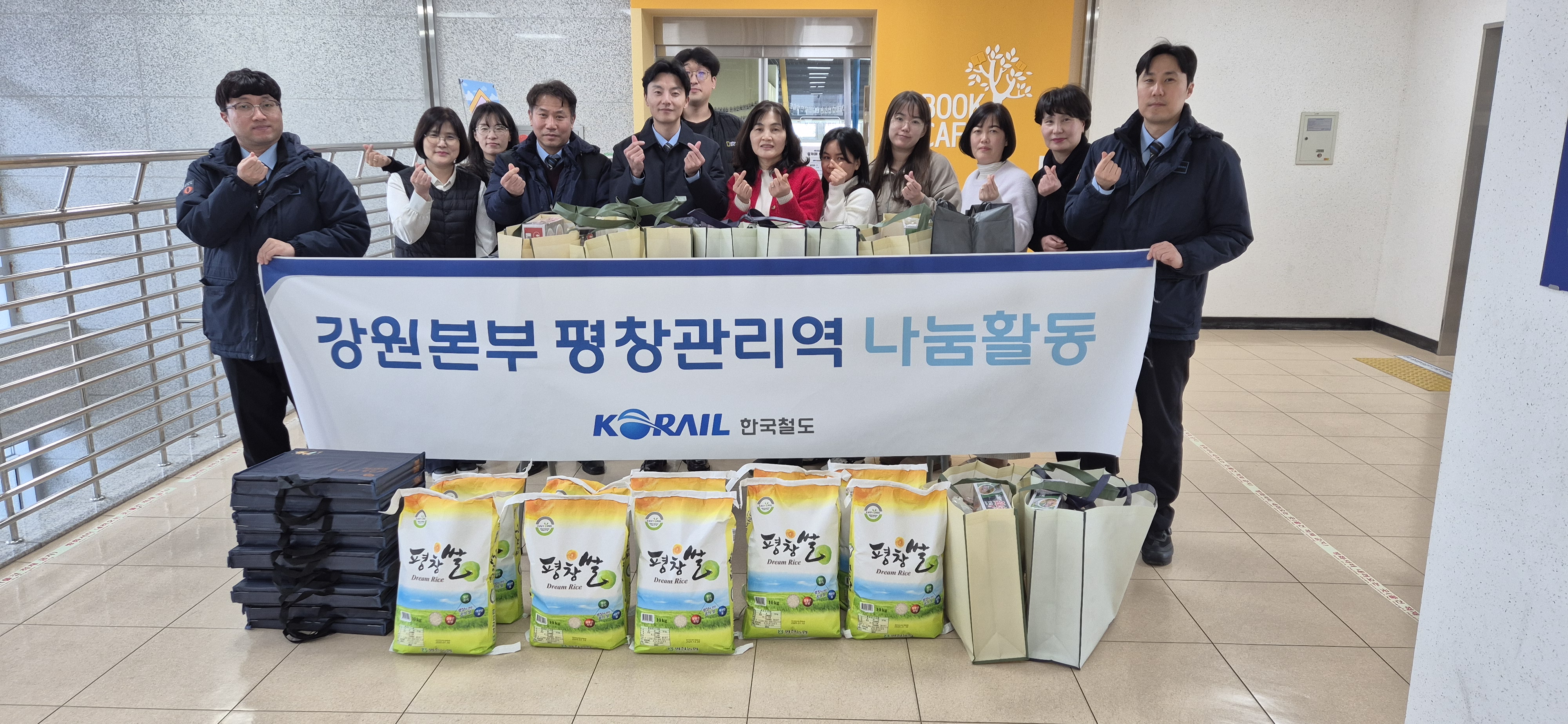 한국철도 강원본부 평창관리역(역장 문강민) 평화수 봉사회에서는 지난 20일 설 명절을 앞두고 지역 평창군가족센터를 통해 쌀, 라면 등 1백만원 상당의 식료품을 기부하였다.