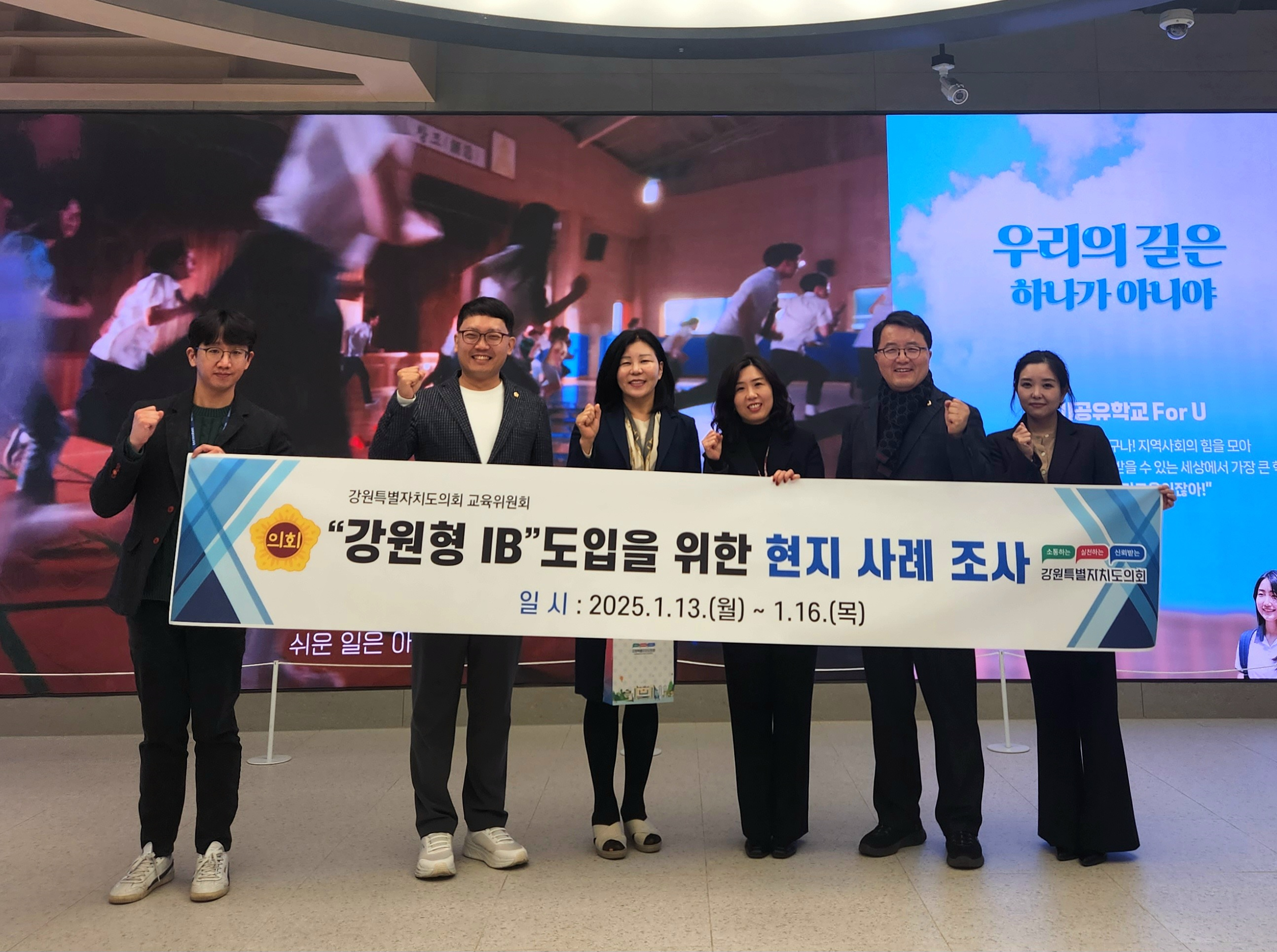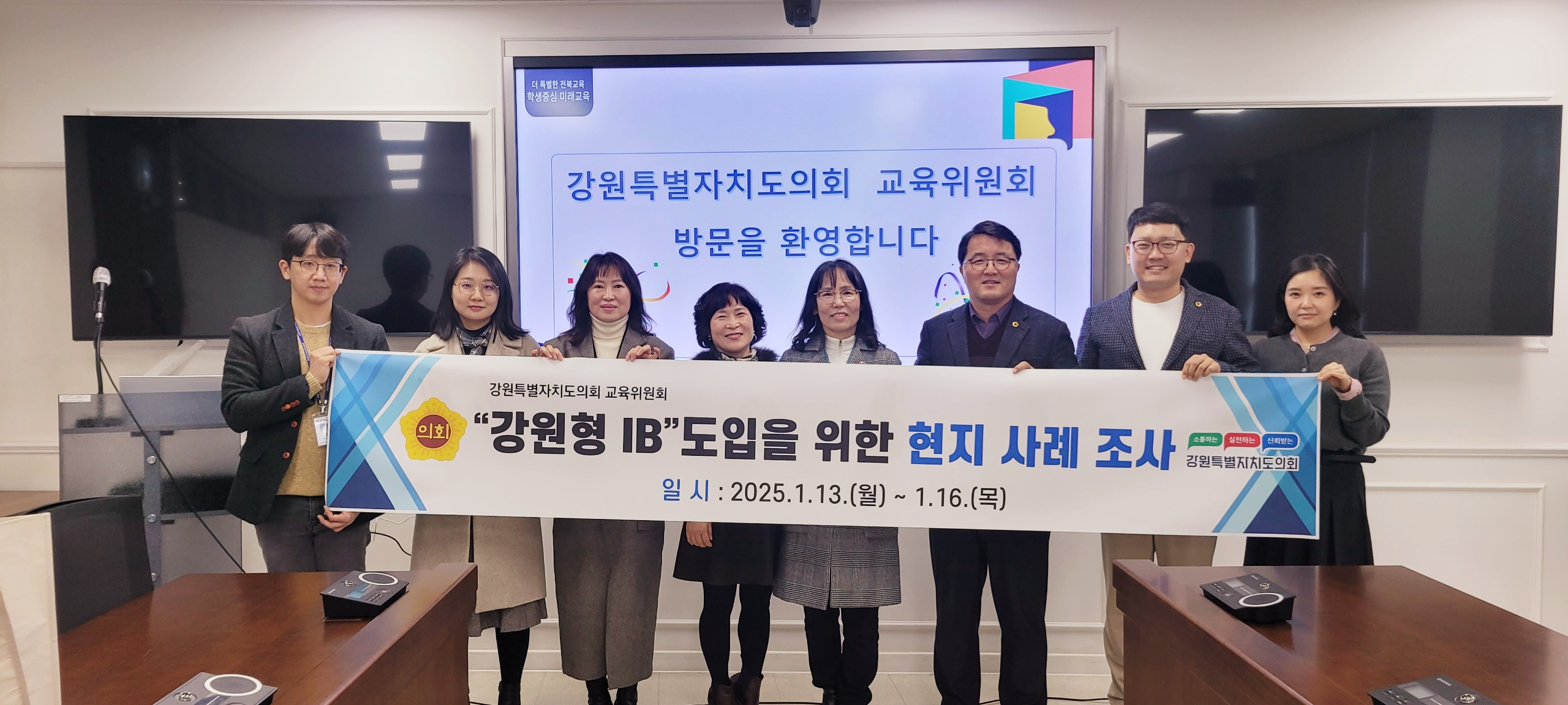 강원특별자치도의회 교육위원회 심오섭, 최재민 의원은 1월 13일부터 16일까지 3박 4일간의 일정으로 전북특별자치도교육청, 경기도교육청, 제주특별자치도교육청, 표선고등학교(제주)를 방문하여 ‘강원형 IB’ 도입을 위한 벤치마킹을 실시하였다.