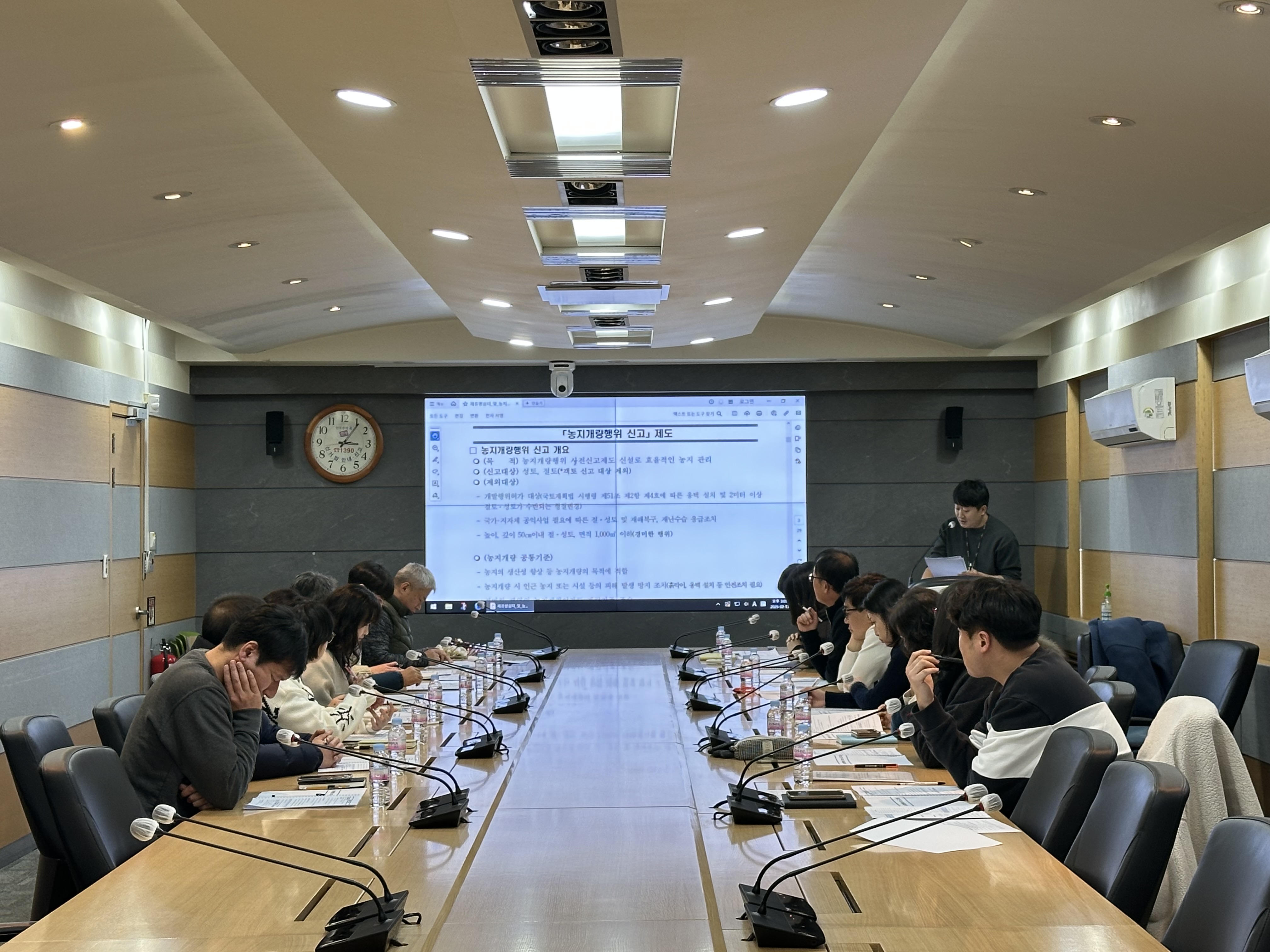 설명회는 농촌 체류형 쉼터의 설치 기준, 농지 개량 신고 절차, 관련 법규 해석 등으로 진행되며, 실무자들이 현장에서 자주 겪을 수 있는 문제 사례를 중심으로 실질적인 해결 방안을 모색하는 시간을 제공했다.