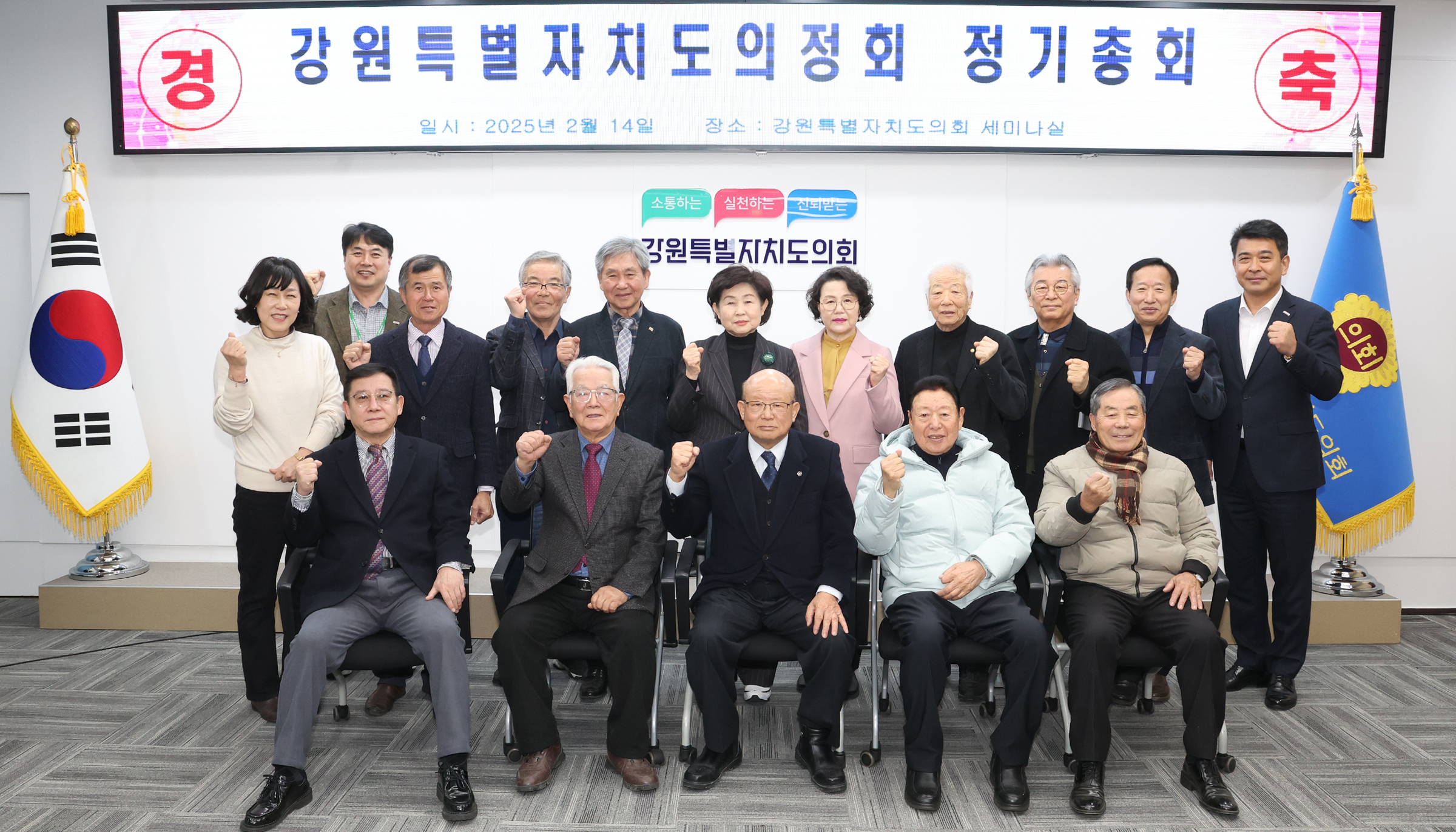 강원도특별자치도의정회는 2월 14일(금) 강원특별자치도의회 세미나실에서‘2025년도 정기총회’를 개최했다. 이 자리에서 2024년도 세입세출 결산승인과 2025년도 주요사업계획을 발표하여 승인 받았다.