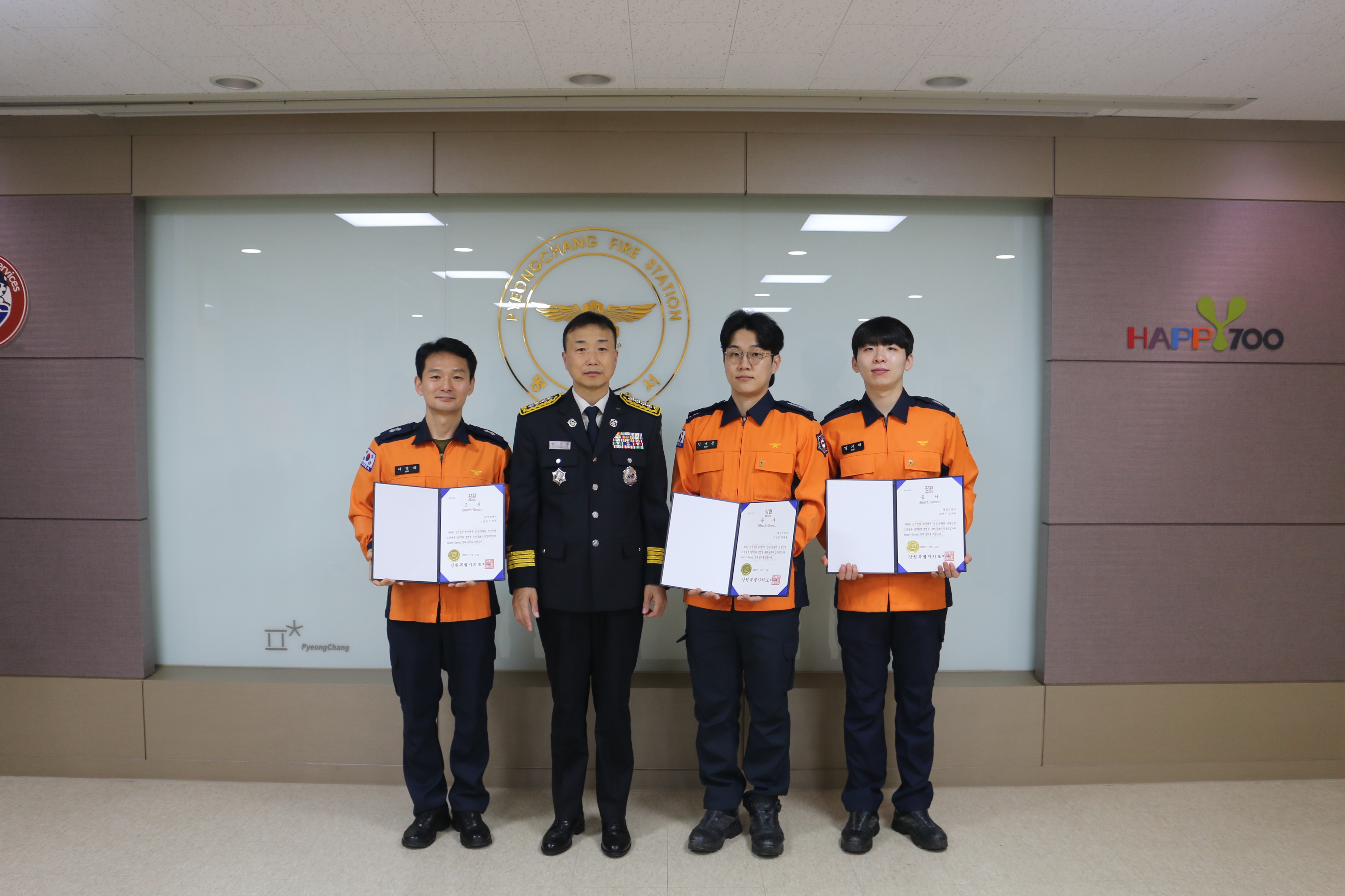 이번 수여식에서는 소방경 이병국, 소방장 김대훈, 소방사 김기태 3명의 소방공무원이 하트세이버 인증서와 배지를 받았다.