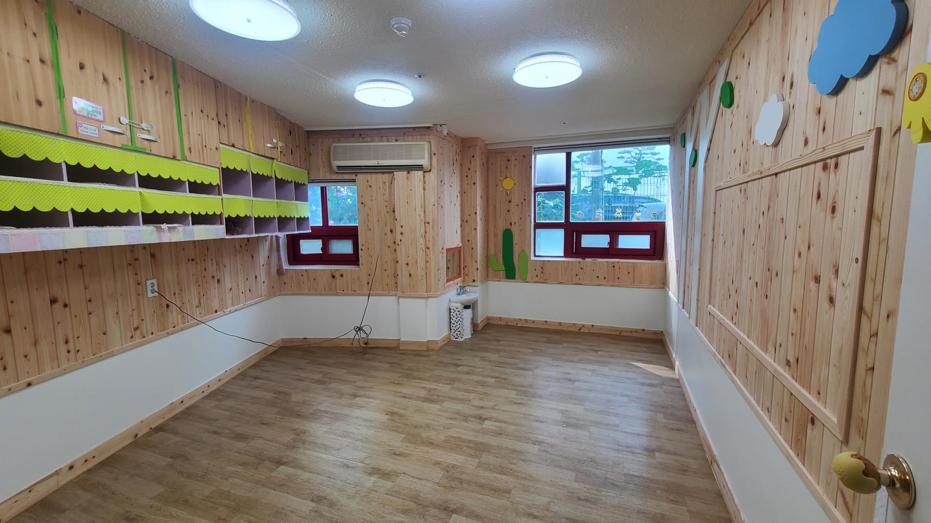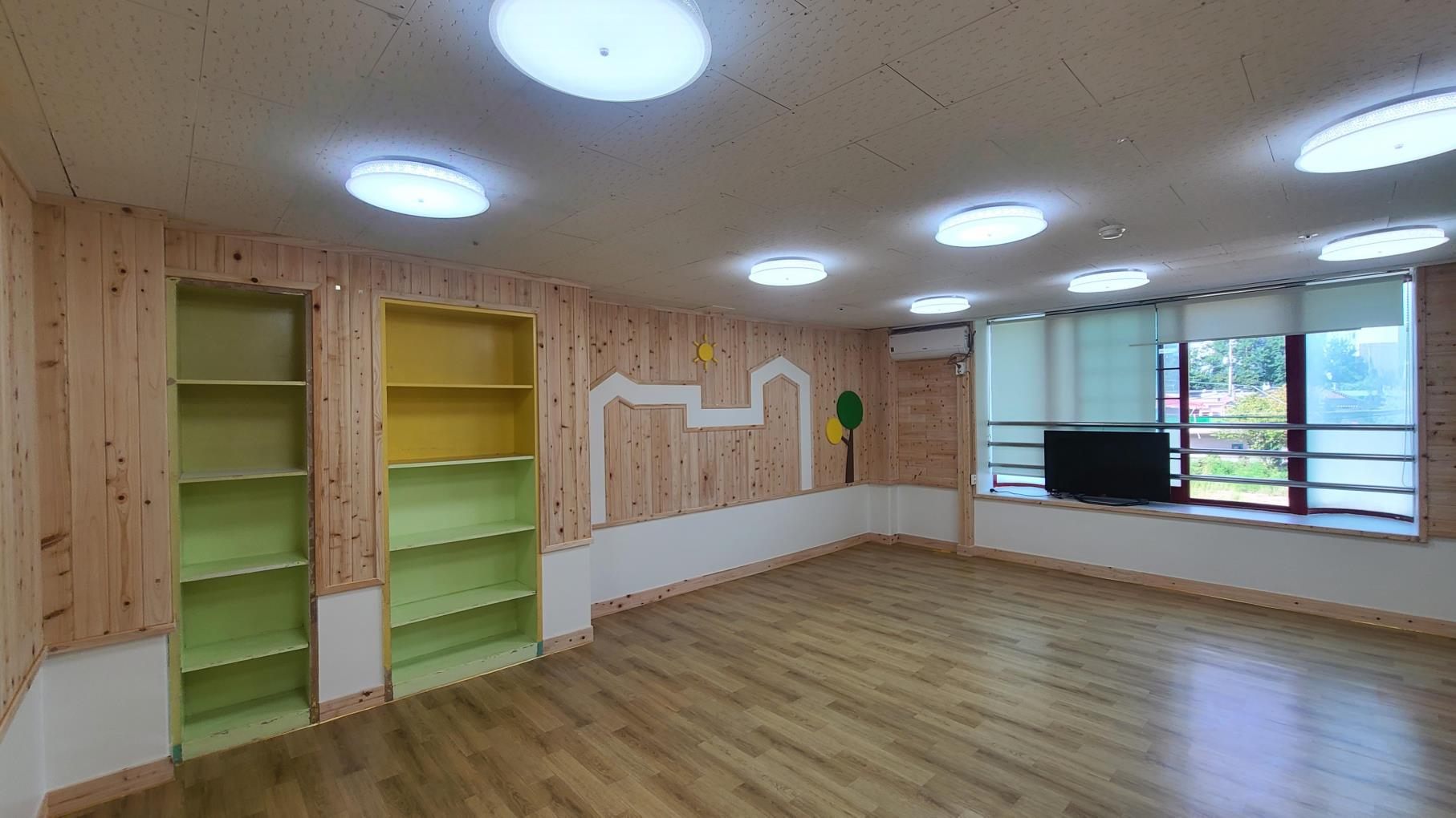 * 국산목재 제품만 사용, 보육실 등 실내 벽면의 70% 이상 목재 마감