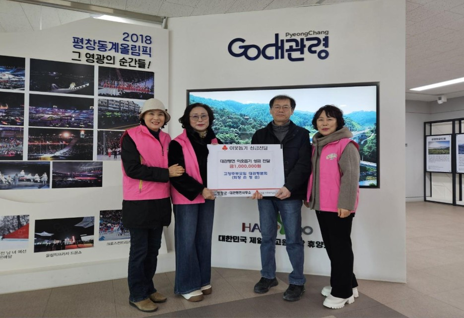 이번 성금은 2025년 대관령눈꽃축제에서 전통음식을 판매한 수익금의 일부로, 지역 내 어려운 이웃들에게 따뜻한 도움을 전하기 위해 마련됐다.
