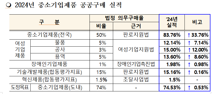 도는 지난해(2024년 실적) 최종 집계 결과, 공공기관 구매 평가 전 분야에서 의무구매율을 2년 연속 달성하는 성과를 거두었다.