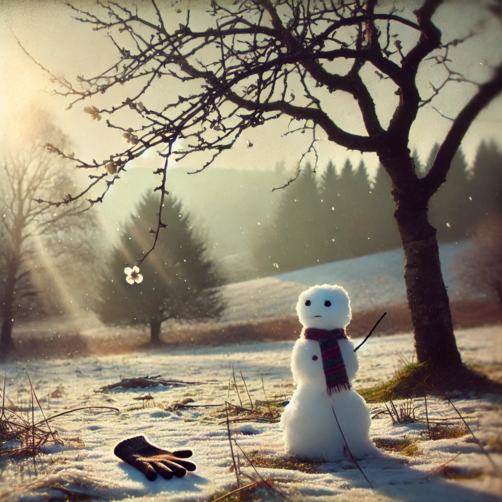 흔적을 뭉치고 둥굴리며 눈사람을 만든다.