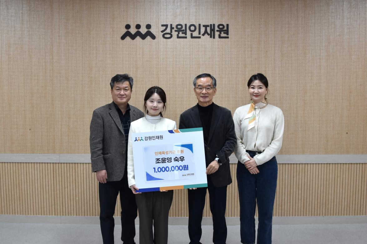 최근 강원학사를 졸업한 조윤영 숙우(30세)가 지난 3월 6일 후배들을 위해 기부금 100만 원을 강원인재원(원장 김학철)에 기탁했다.