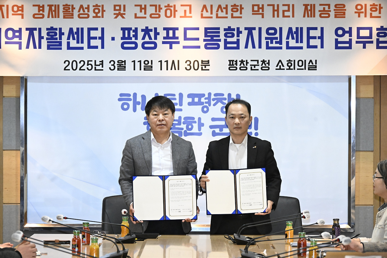 평창지역자활센터는 11일 평창군청 소회의실에서 평창지역자활센터 행복도시락 로컬푸드 공급을 위한 ‘평창지역자활센터-(재)평창푸드통합지원센터 업무협약’을 체결했다.