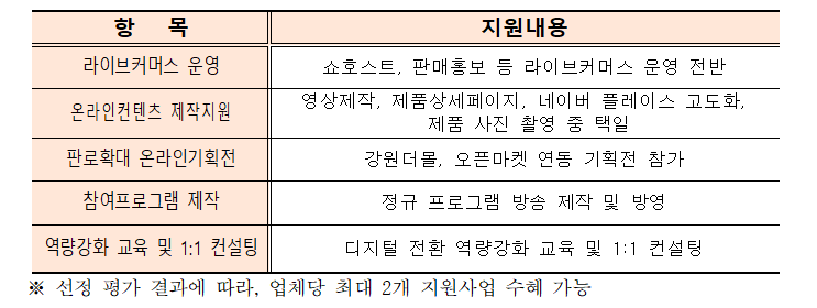 ** 소담스퀘어 강원 홈페이지 – 지원사업 – 공지사항 – 사업공고문 참조
