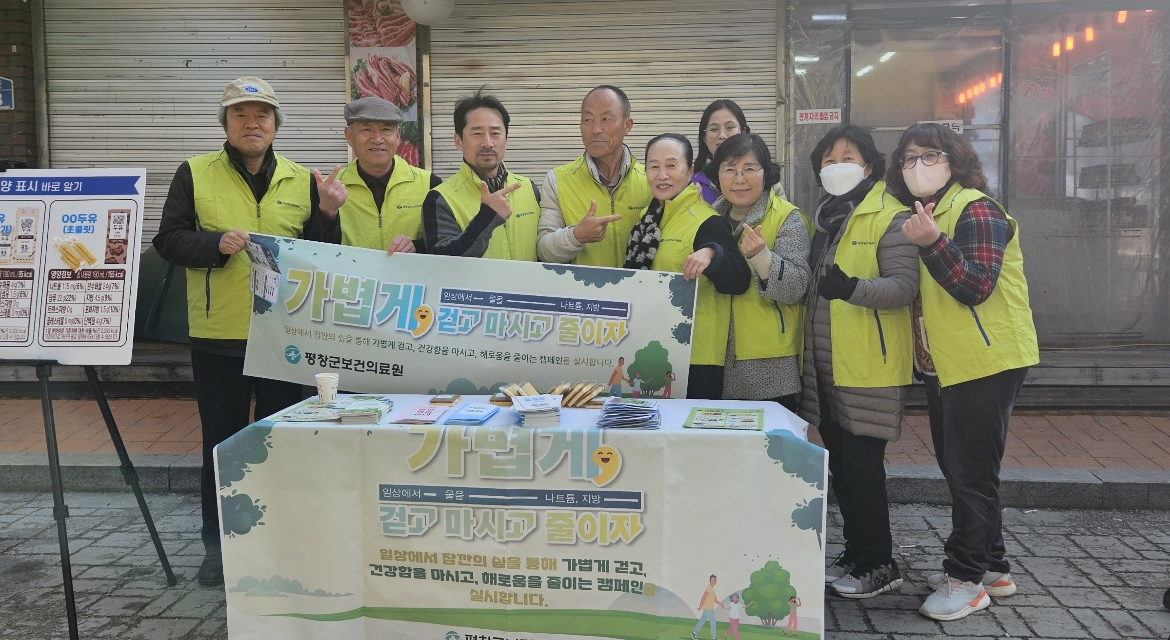 평창읍 건강위원회, 비만 예방 및 걷기 운동 활성화 홍보 캠페인 실시지난 3월 20일, 평창읍 건강위원회(위원장 지홍균) 회원 10여 명은 평창올림픽시장에서 평창군보건의료원과 함께 비만 예방 및 걷기 운동 활성화를 위한 홍보 캠페인을 실시했다. 이번 캠페인은 주민들의 건강한 생활습관 형성을 유도하고 일상 속 걷기 실천을 장려하기 위해 마련되었다.