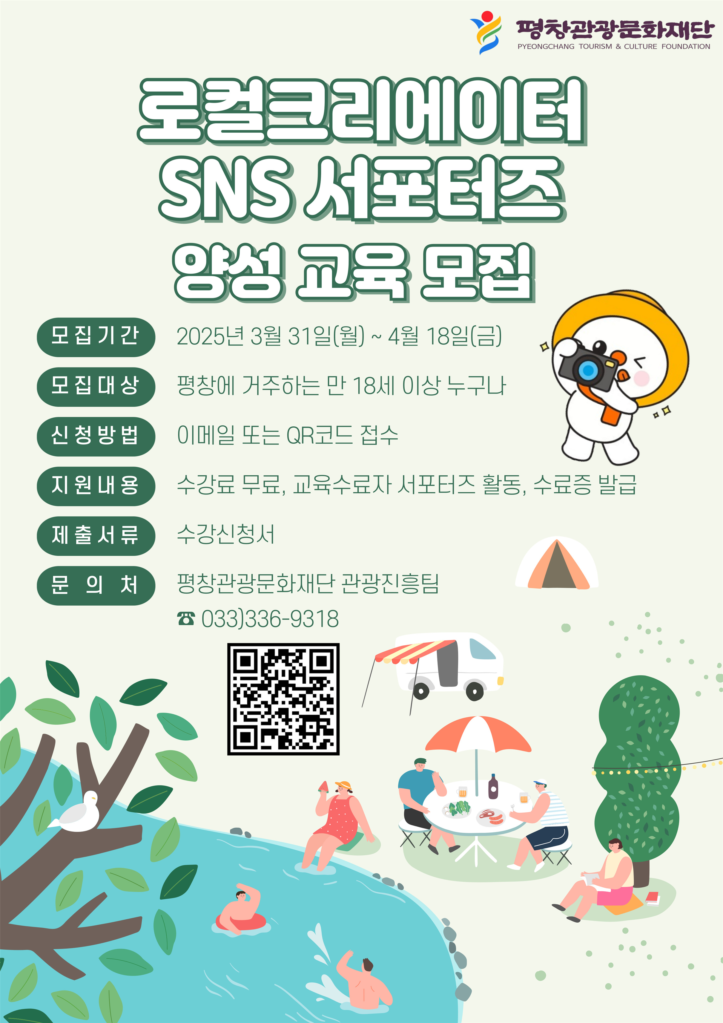 평창관광문화재단이 331일부터 418일까지 로컬크리에이터 양성 교육‘SNS 서포터즈참여자를 모집한다.