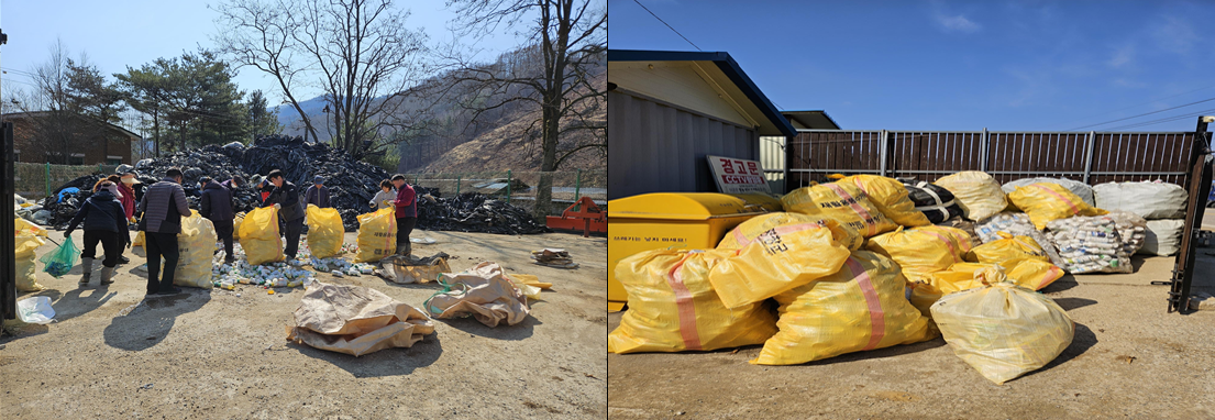이날 주민들은 겨우내 마을 곳곳에 쌓인 생활쓰레기, 재활용품, 폐농약용기 등 약 5톤가량의 폐기물을 수거하며, 마을 구석구석을 정비하는 데 구슬땀을 흘렸다.