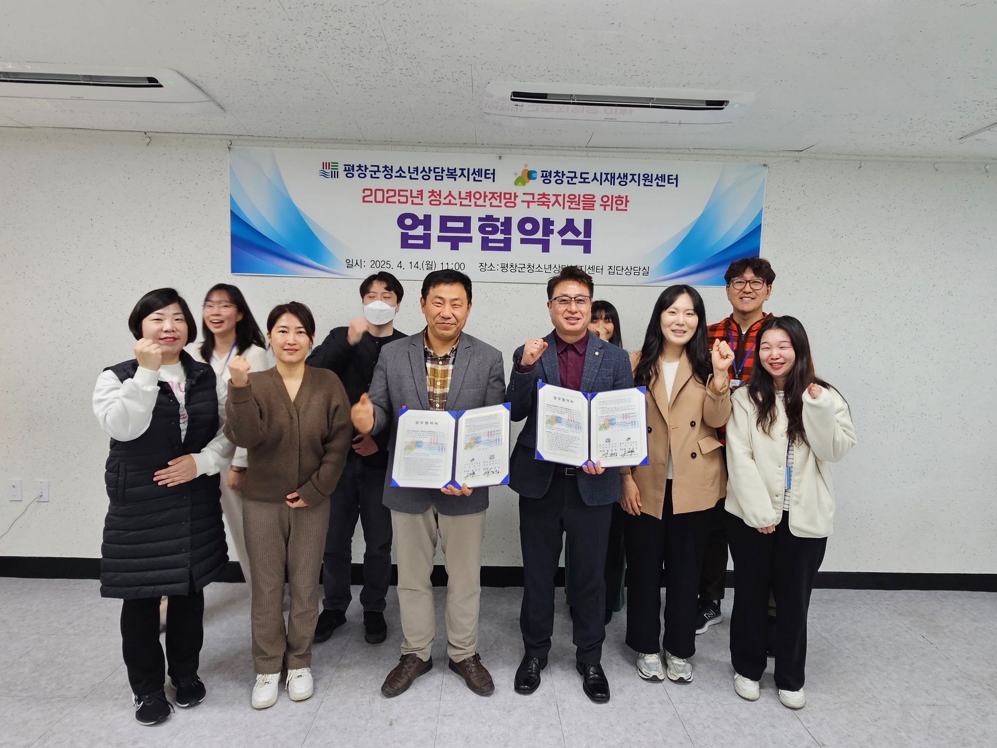 평창군청소년상담복지센터와 평창군도시재생지원센터(센터장 윤전우)는 14일 평창군청소년상담복지센터 집단상담실에서 도시재생사업과 청소년복지 증진을 위한 업무협약을 체결하고, 지역 청소년의 건강한 성장과 지역사회의 지속 가능한 발전을 위한 본격적인 협력에 나섰다.