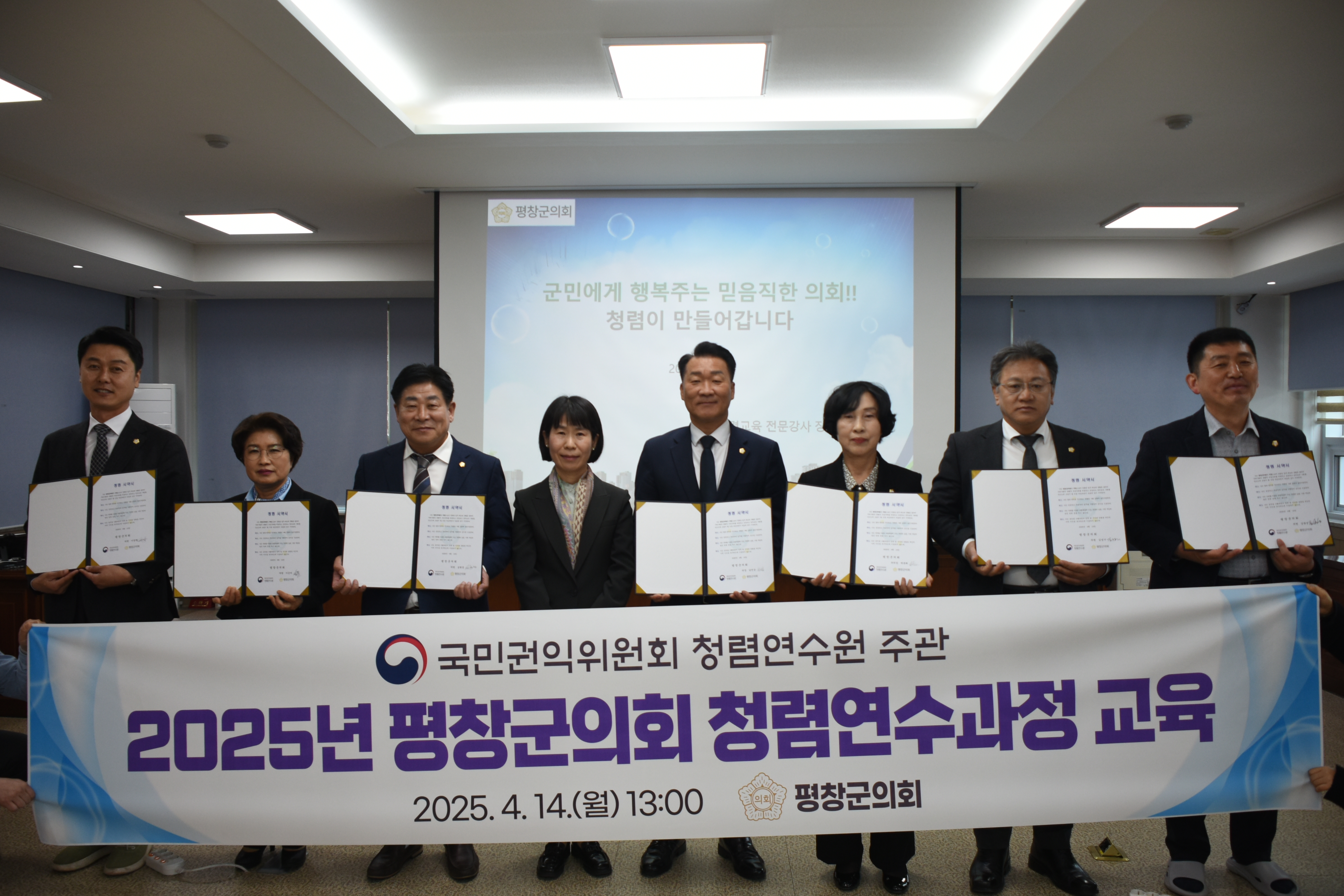 이번 교육은 올바른 청렴문화 확산 및 공정한 의정활동을 위해 국민권익위원회 청렴연수원에서 주관하는 과정으로, 평창군의회는 해당 과정 대상기관으로 선정되어 추가 예산 소요 없이 군민에게 더욱 신뢰받는 의회로 앞장설 수 있게 되었다.