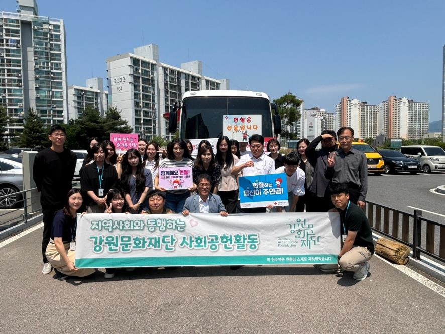 강원문화재단은 올해 헌혈 캠페인을 시작으로, ESG경영 실천과 노사 상생의 일터 조성을 위한 사회공헌 활동을 적극적으로 추진할 계획이다. 주요 활동으로는 ▲지역 어르신 대상 식사 배달 지원‘런치 버킷 챌린지’, ▲지역농가 수확철‘농촌 일손돕기’, ▲필요 물품을 지원하는‘나눔 기부 활동’등이다.