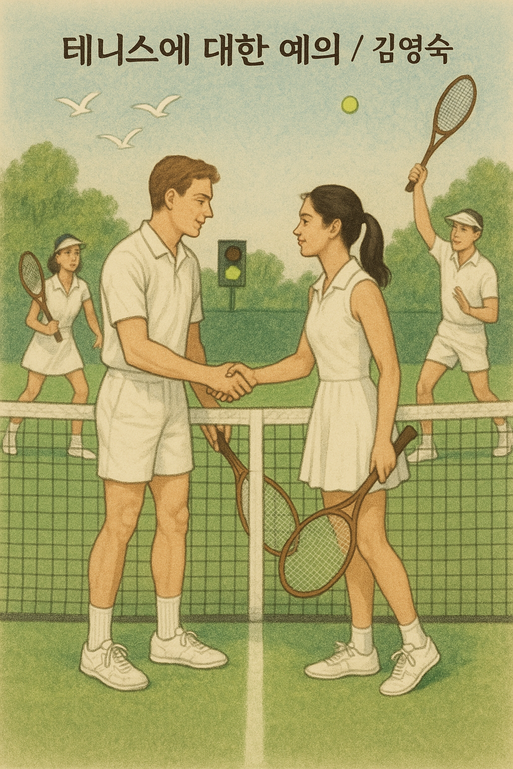 네트를 사이에 두고 배운 그대로 악수를 한다