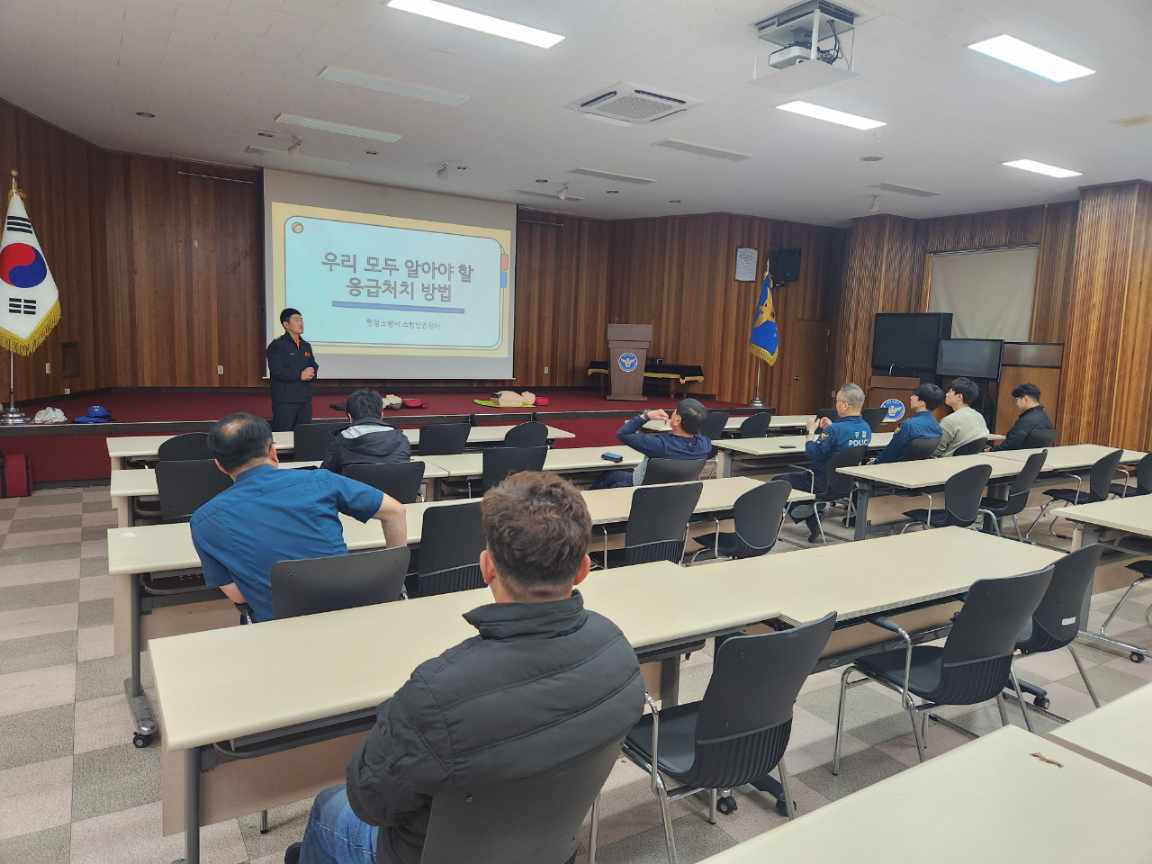 평창소방서의 소방안전강사가 진행한 이번교육은 ▲심폐소생술(CPR) 이론 및 실습 ▲자동심장충격기(AED) 사용법 ▲기도폐쇄 응급처치법 등 실제 상황에 즉시 활용 가능한 내용으로 구성됐다.