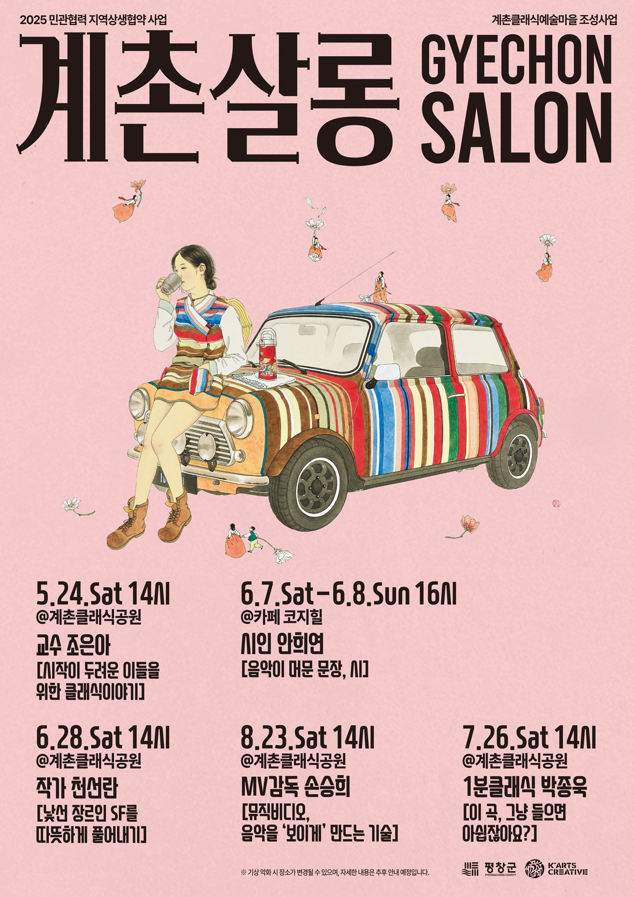 공연과 강연이 결합한 이번 시리즈는 클래식 마을로 떠나는 음악 소풍을 주제로, 예술을 다층적으로 경험할 수 있는 복합 문화 프로그램으로 거듭났다. 총 6회에 걸쳐 매월 정기적으로 열리며, 평창군청과 케이아츠크리에이티브가 공동 주최한다.