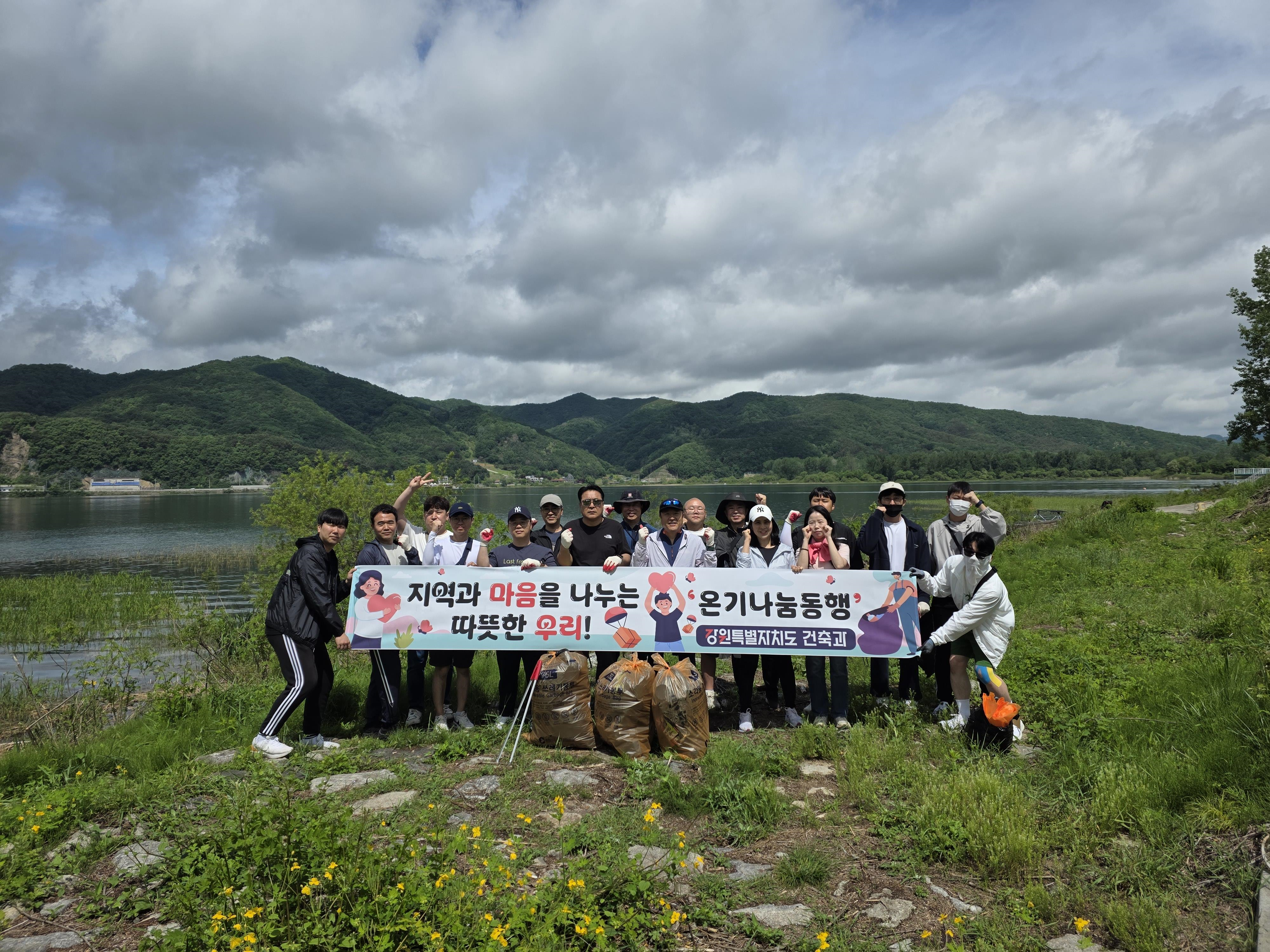 강원특별자치도 건축과는 5월 17일(토), 지역 축제를 맞아 의암호 둘레길을 방문하는 주민과 관광객을 위해 지역 이미지를 제고하고자 한강유역 일대에서 환경정화 봉사활동을 실시했다.