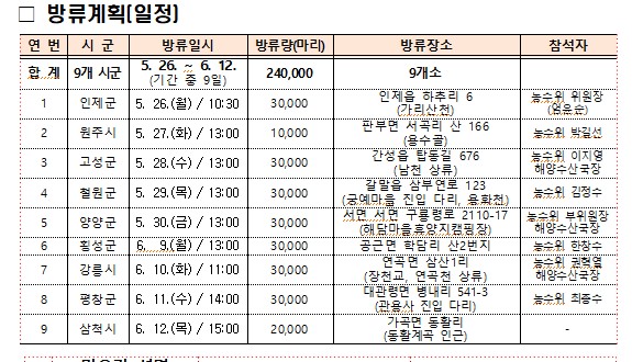 - 9개 시군, 24만 마리, 5월 26일(월) ~ 6월 12일(목), 기간 중 9일