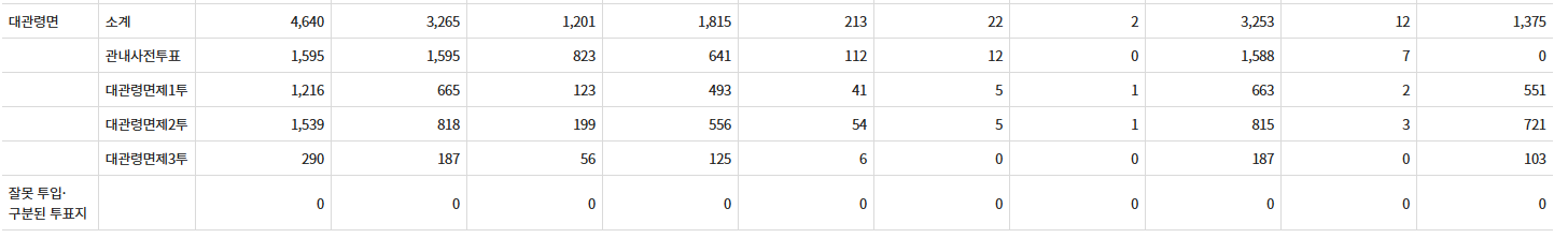 김문수 후보는 모든 읍면에서 과반 이상의 득표율을 확보하며 보수 지지 기반을 견고히 했다. 이재명 후보는 진부면(40.4%), 대화면(41.4%) 등 일부 지역에서 선전했다. 이준석 후보는 대관령면(6.5%), 진부면(5.8%), 봉평면(5.6%) 등지에서 의미 있는 득표율을 기록하며 중도·개혁 성향 유권자의 일부 지지를 확인했다.