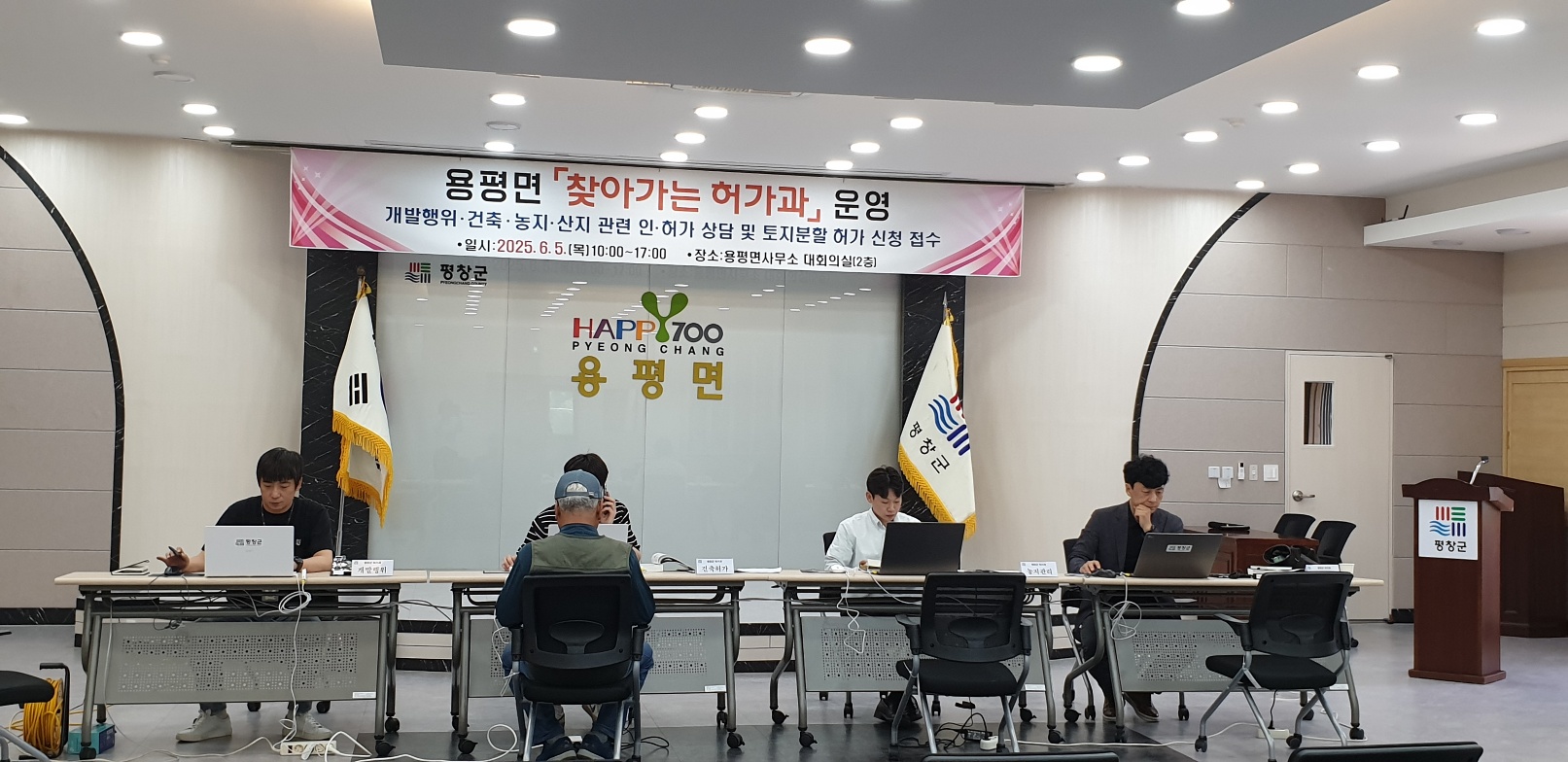 평창군은 5일 오전 10시부터 용평면사무소 대회의실에서 인허가 상담 서비스인 찾아가는 허가과를 운영한다.