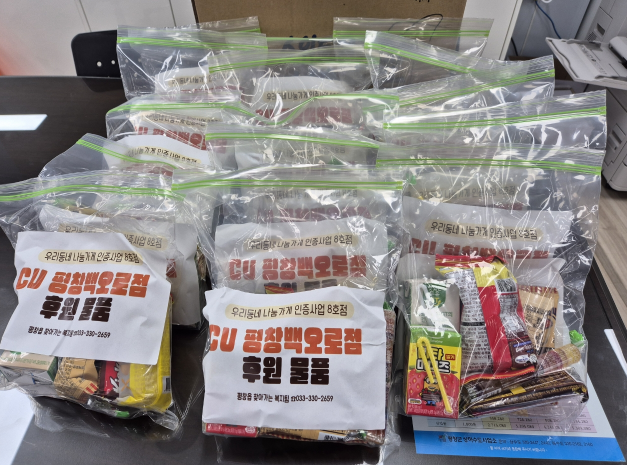 이번에 전달된 간식꾸러미에는 두유, 쿠키, 약과 등 정성이 담긴 간식들이 포함되어 있으며, 평창읍사무소를 통해 도움이 필요한 이웃들에게 전달될 예정이다.