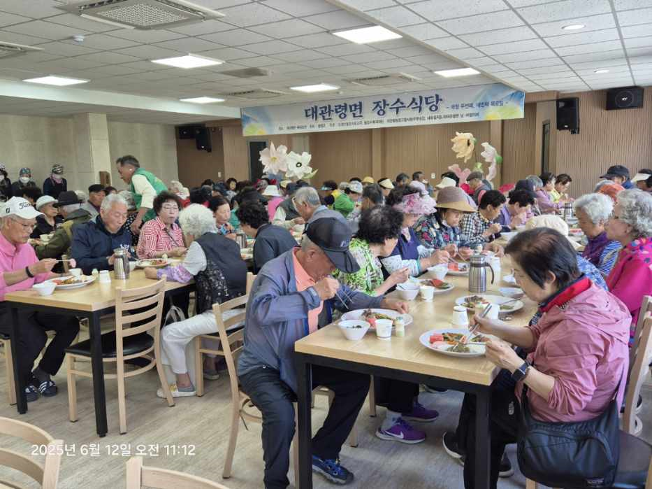 대관령면새마을지도자남녀협의회(회장 이기영, 김명화)는 지난 6월 12일, 대관령면 복지회관에서 ‘장수식당’을 운영하며 관내 어르신 150명에게 따뜻한 점심식사를 대접했다.