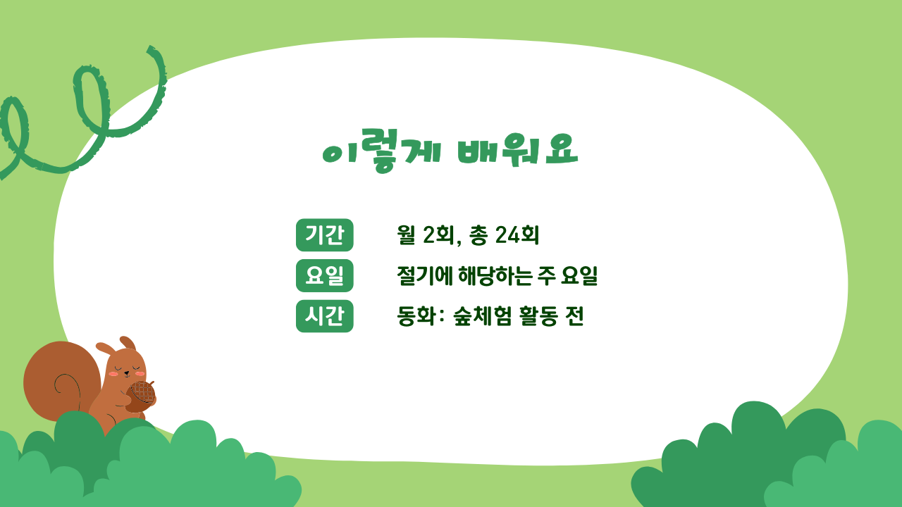 어렸을 때부터 숲이 좋았습니다. 숲은 언제나 저를 편안하게 해주는 곳이었고, 그래서 언젠가 ’숲유치원을 만들고 싶다‘는 막연한 꿈도 품고 있었습니다.
