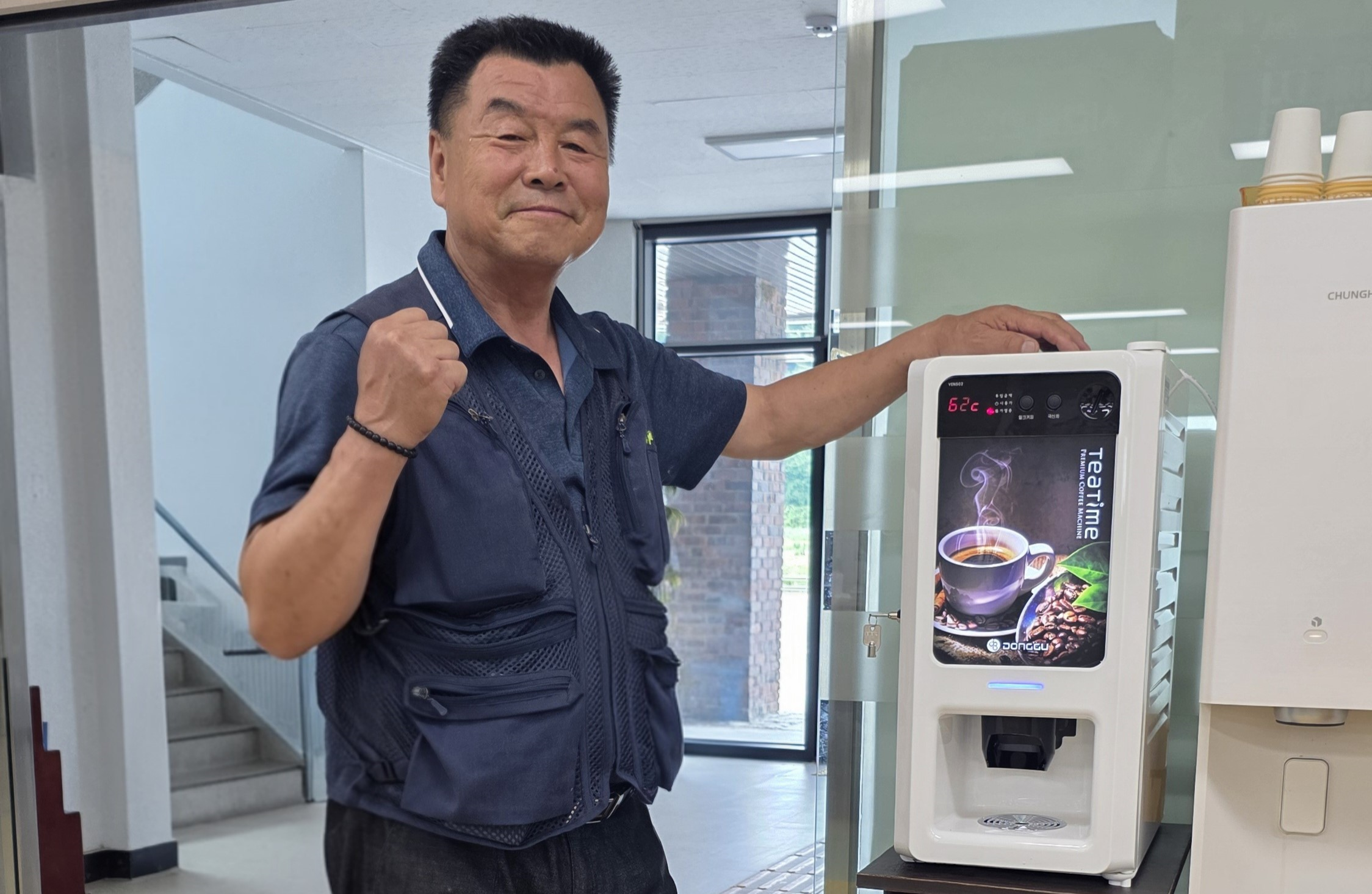 대성쎌틱에너시스 평창중앙대리점(대표 김태웅)은 7월 3일(수), 용평면사무소를 방문하는 민원인들의 편의를 위해 커피자판기 1대를 기부했다.