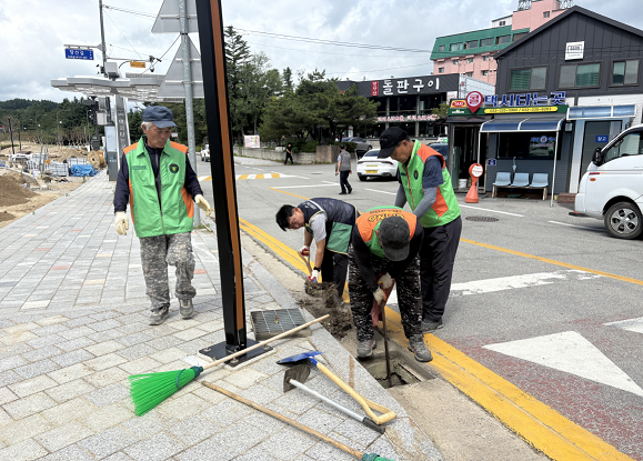 대관령면자율방재단, 빗물받이 정비 및 재해취약지역 점검 실시