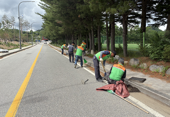 이날 방재단 단원 10여 명은 상지대관령고등학교 앞 도로 일대에서 빗물받이 내 퇴적된 토사와 낙엽 등을 제거하고, 주변 환경 정비 작업을 함께 진행했다.