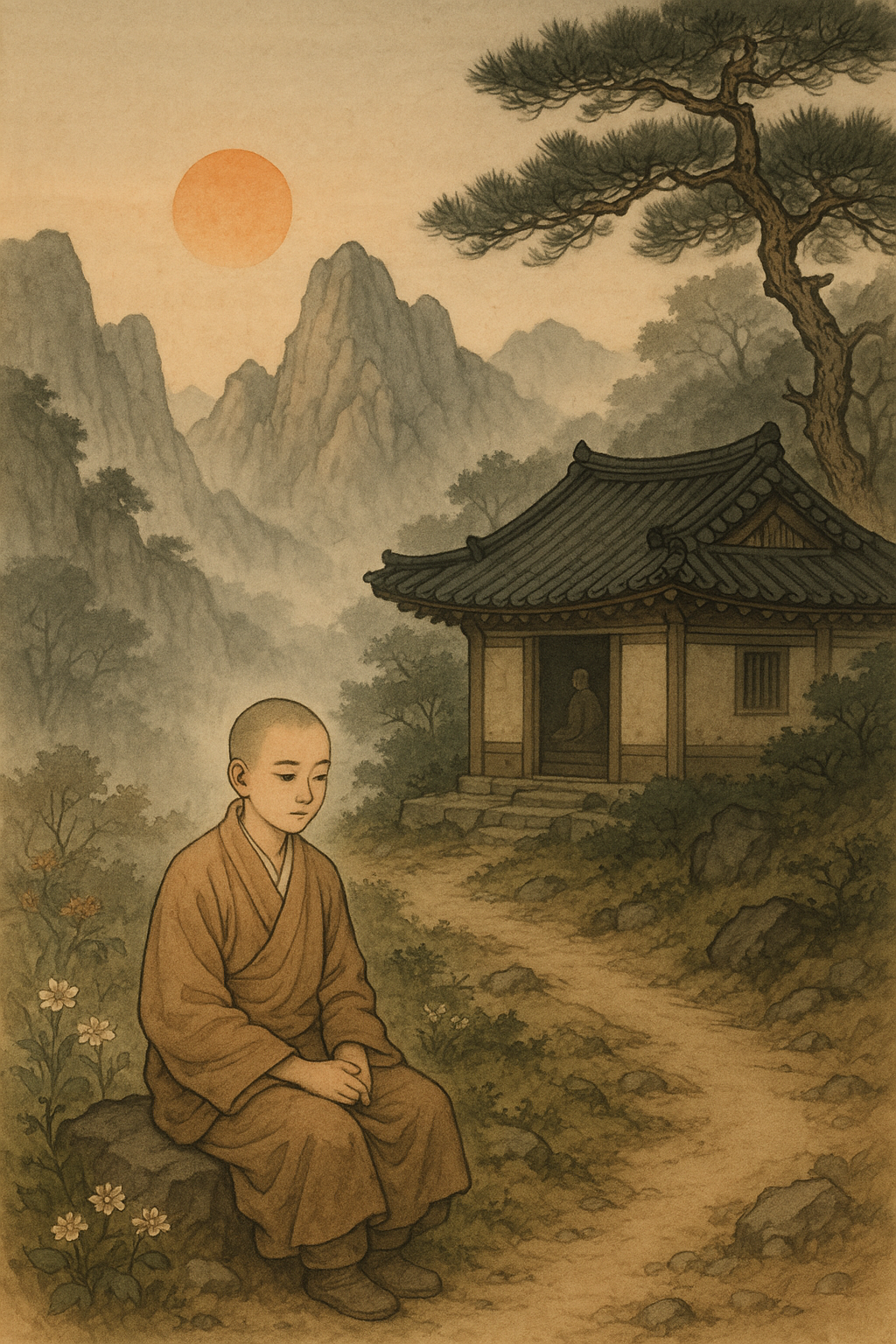 때마침 고즈넉한 암자에 눈 푸른 납자가 있어, 삼엄하고 형형한 눈빛.