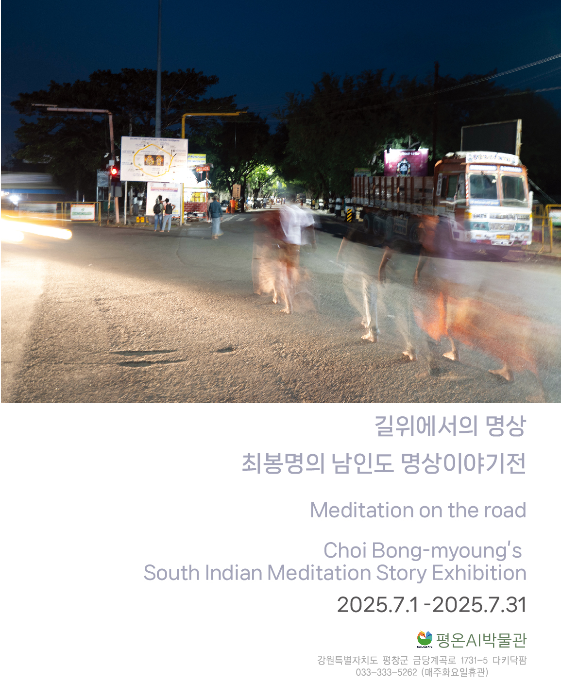 7월 1일부터 30일까지 평온AI박물관에서는 ‘길 위에서의 명상’ 전시가 진행된다. 남인도 지역에서 촬영한 사진과 글, 명상적인 오브제들이 어우러져 관람객들에게 내면의 평화를 선사한다. 최봉명 작가는 “명상은 좌선을 통해서만 하는 것이 아니라, 우리의 진아를 알게 되면 명상은 걸으면서도 여행을 통해서도 할 수 있다.”고 말했다.