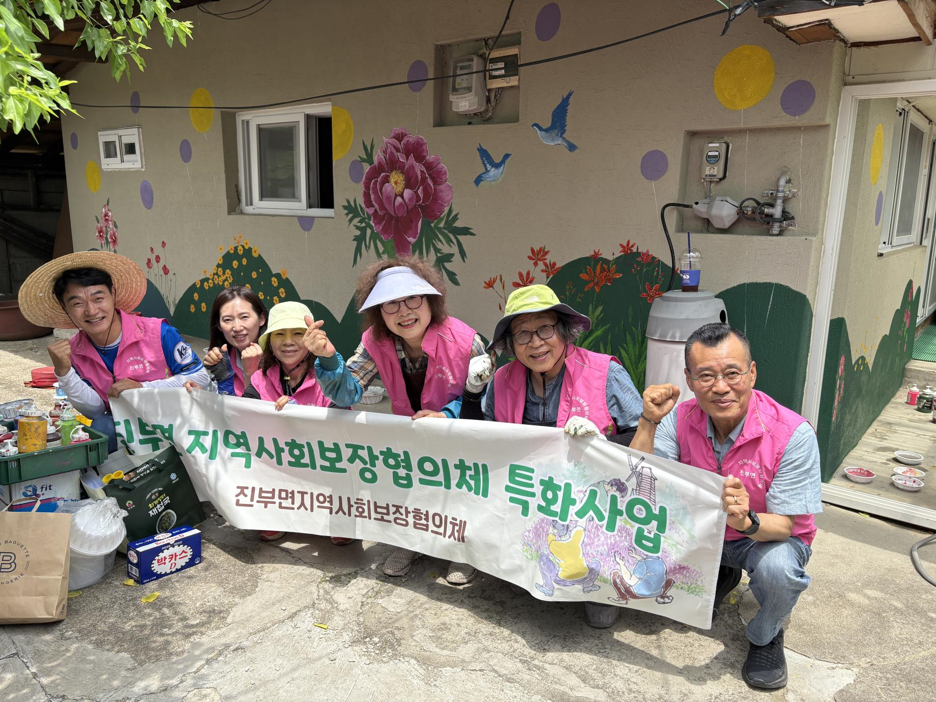 진부면지역사회보장협의체(위원장 김남섭, 우강호)는 지난 7월 9일, 심리적 어려움을 겪는 지역 내 취약가정을 대상으로 ‘그림을 통한 심리지원 서비스’의 일환으로 벽화 그리기 사업을 진행하였다.
