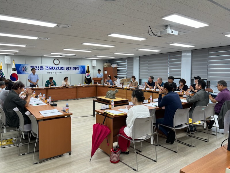 7월 정기회의에서는 ▲평창읍 어린이를 위한 반짝 물놀이 추진 계획 ▲주민총회와 주민 소통 한마당 추진 ▲주민자치회원 추가 모집 ▲어린이 교통안전 노란 발자국 사업 ▲평창읍 주요 일정 안내 및 협조 사항 등이 다뤄졌다.