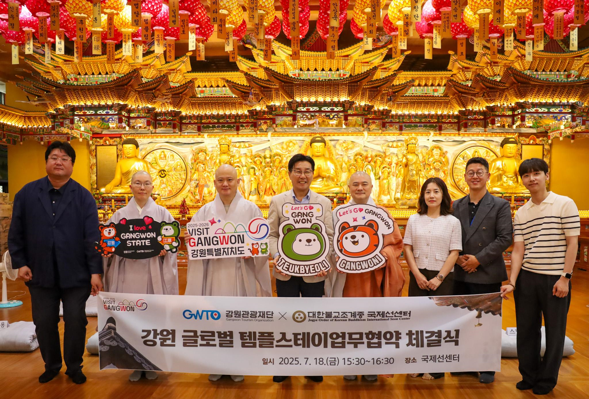 강원관광재단(이하 재단)은 7월 18일(금), 국제선센터에서 방한 외국인 대상 체험형 관광상품 개발을 위한 ‘글로벌 템플스테이 업무협약(MOU)’을 체결하였다.