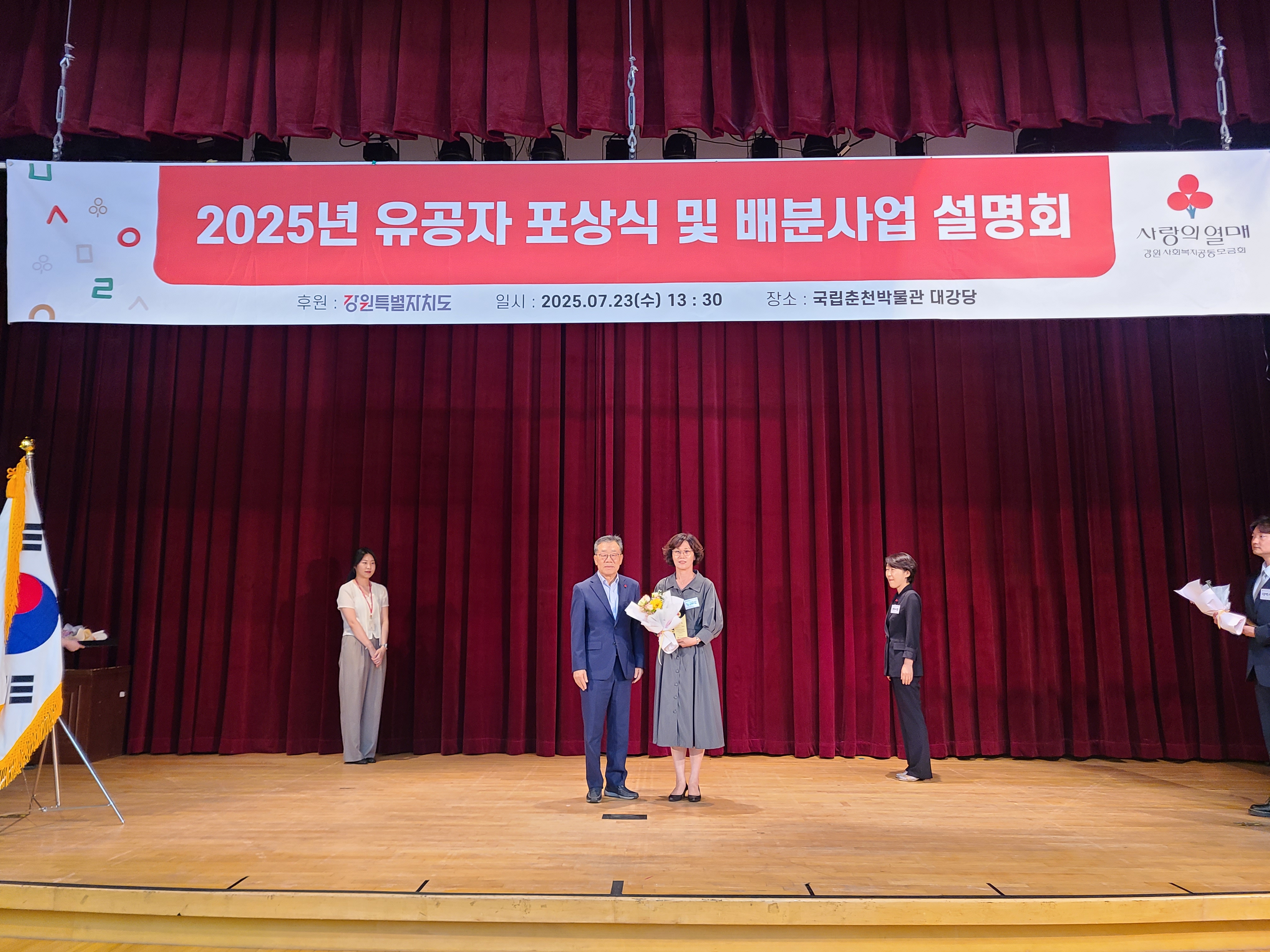 평창군이 지난 23일 춘천 국립박물관 대강당에서 열린 ‘2025년 나눔 실천 유공자 포상식’에서 2024년 인구당 모금액 상위 기관으로 선정되어 강원사회복지공동모금회(회장 유계식)로부터 표창을 받았다.
