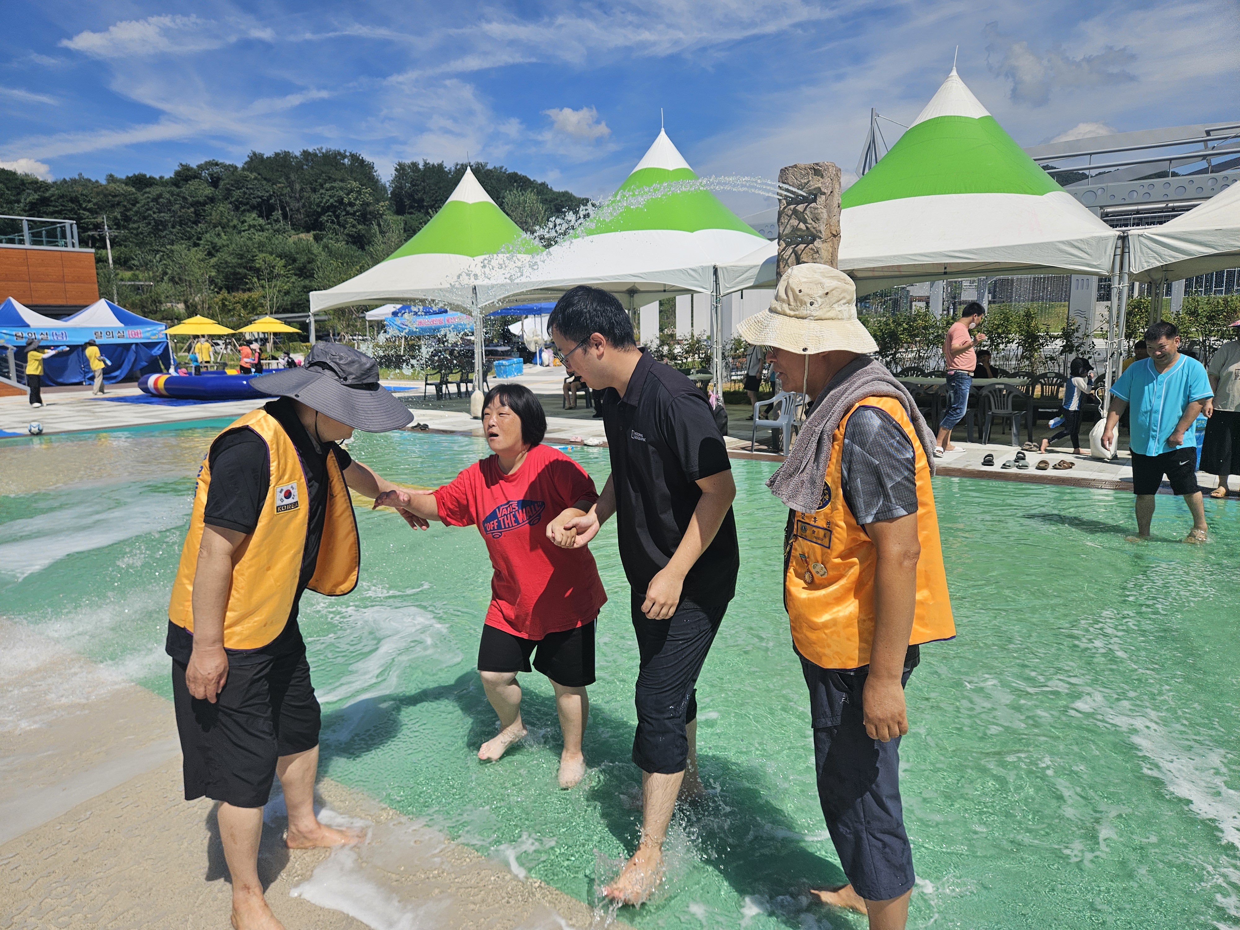 지난 8월 1일 평창중앙라이온스클럽(회장 김진규) 회원들은 평창읍 노람들 일원에서 열리는 반짝 물놀이 행사에 장애인복지센터 발달장애인들과 함께 물놀이 아름다운 동행, 함께하는 봉사활동을 펼쳤다.