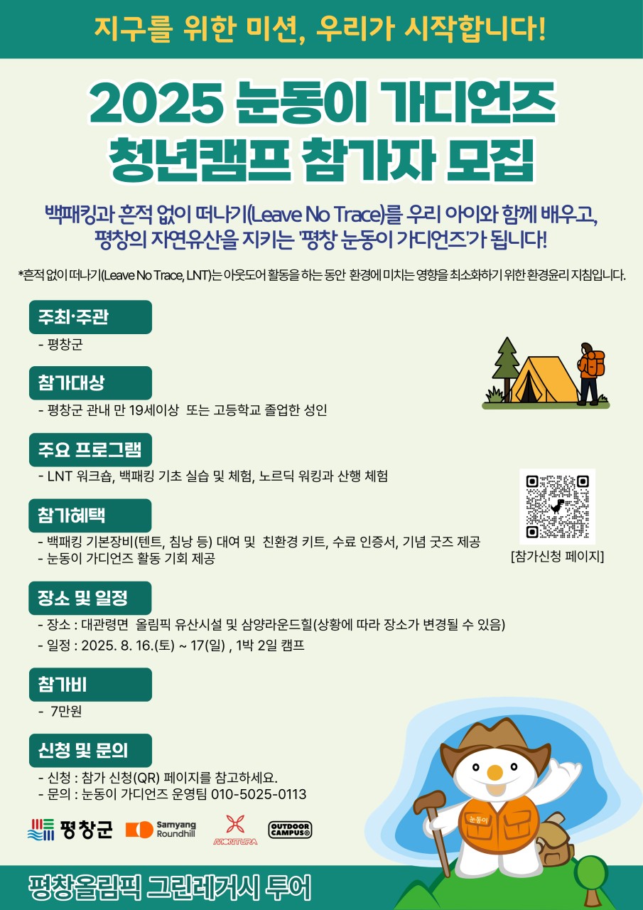‘2025년 평창군 눈동이 가디언즈 청년 캠프’ 참가자 모집