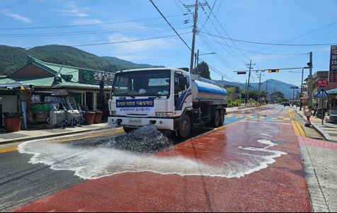 이번 살수작업은 연일 계속되는 고온으로 과열된 도로의 표면 온도를 낮추고, 주민들의 체감 온도를 줄이기 위한 조치로, 살수차를 동원해 주요 도로변을 중심으로 진행됐다.