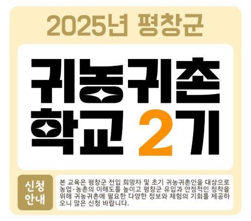 평창군, ‘2025년 귀농귀촌학교 2기’ 교육생 모집