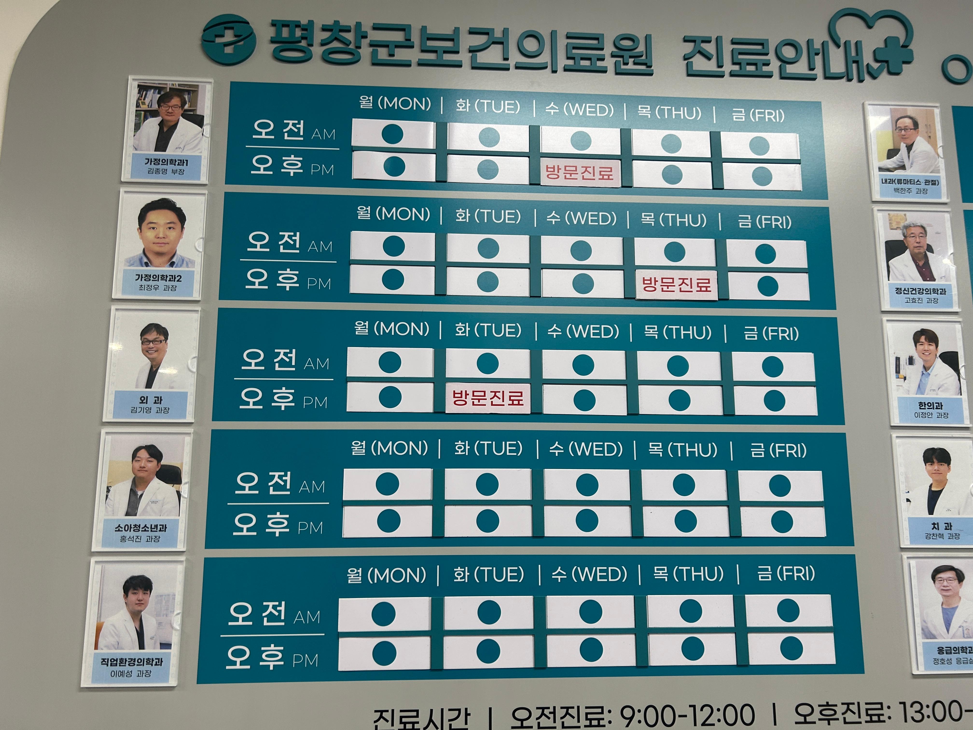 평창군보건의료원은 현재 내과, 정신건강의학과, 한의과, 치과, 응급의학과, 가정의학과(2개 진료과), 외과, 소아청소년과, 직업환경의학과 등 총 9개 진료과를 운영하며 지역 주민의 건강 증진과 질환 관리에 힘쓰고 있다. 다양한 진료과 확충은 농촌지역 주민들의 의료 접근성을 높이고, 불평등한 의료 격차 해소에 기여하고 있다는 평가다.